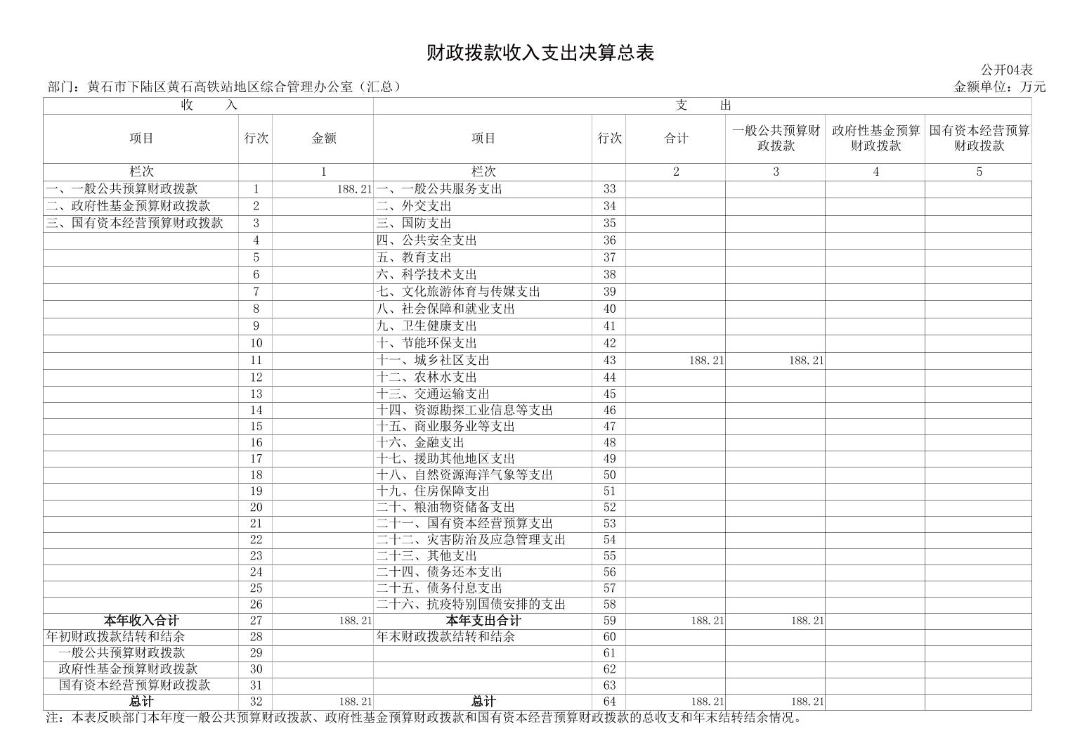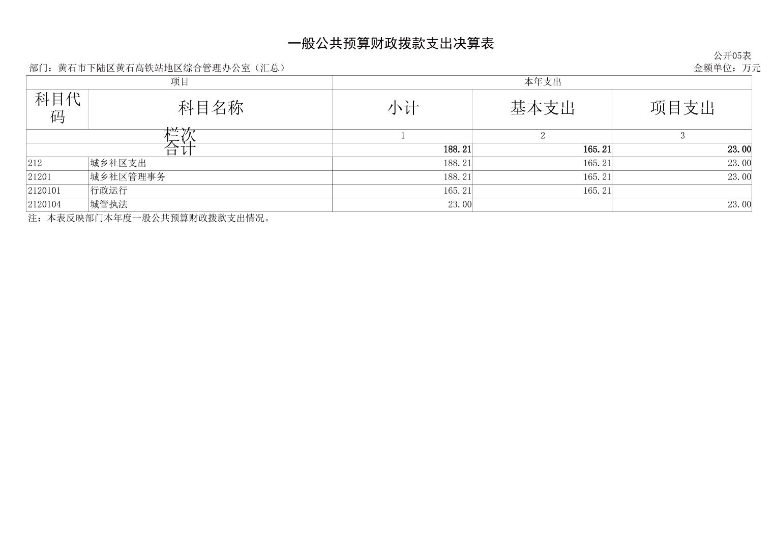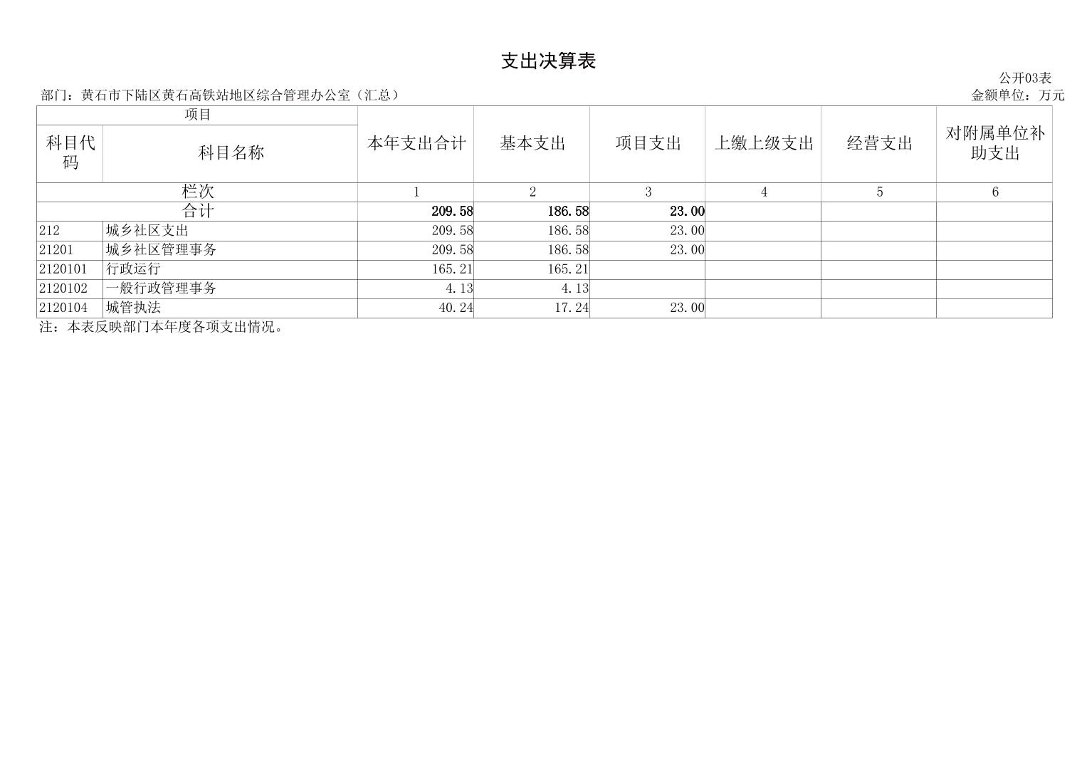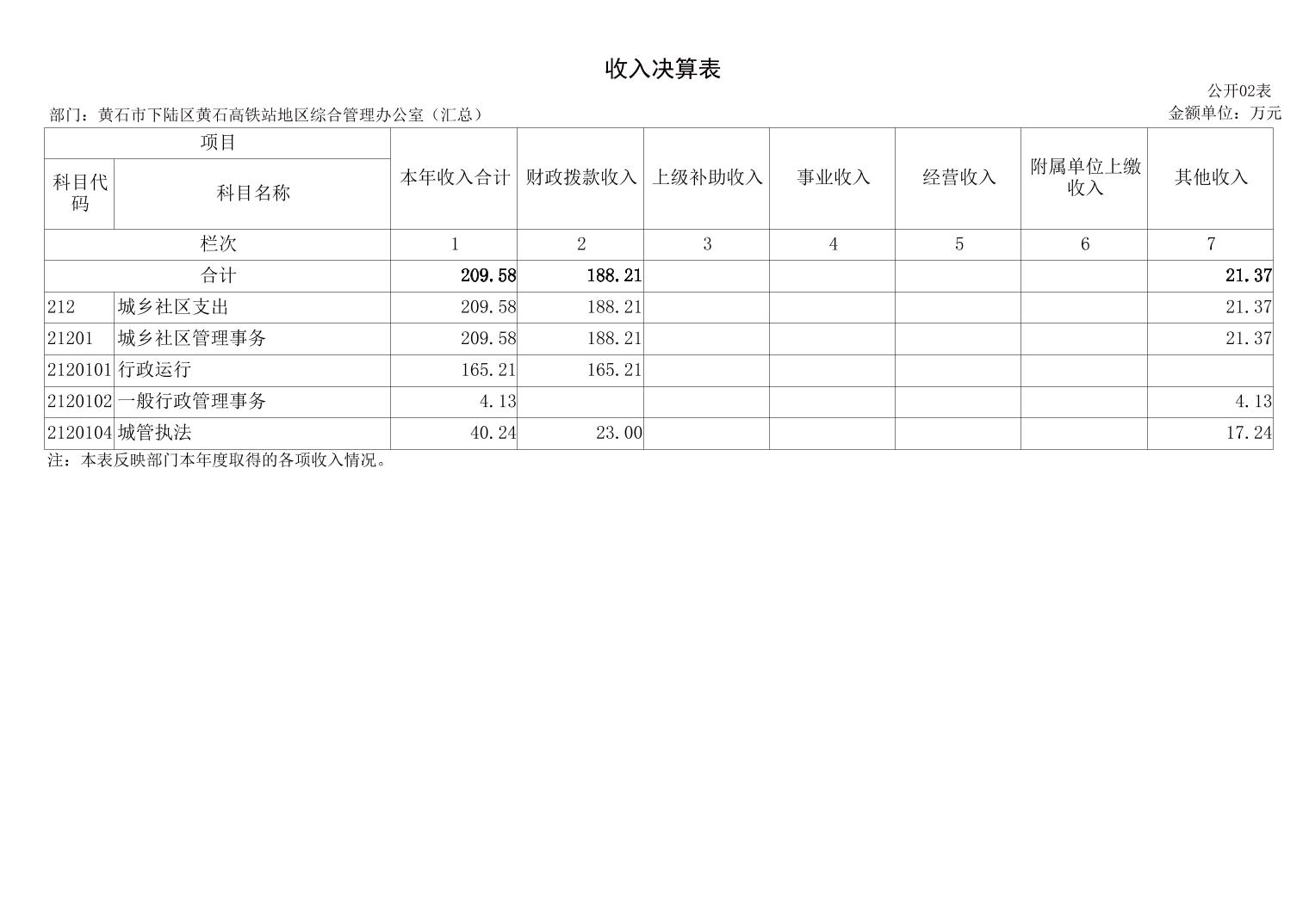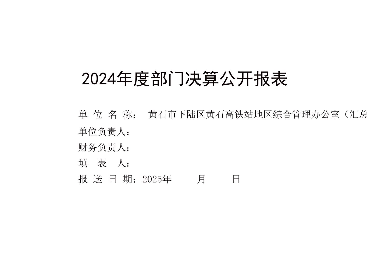 名 称: 下陆区黄石高铁站地区综合管理办公室(汇总)2024年度部门决算