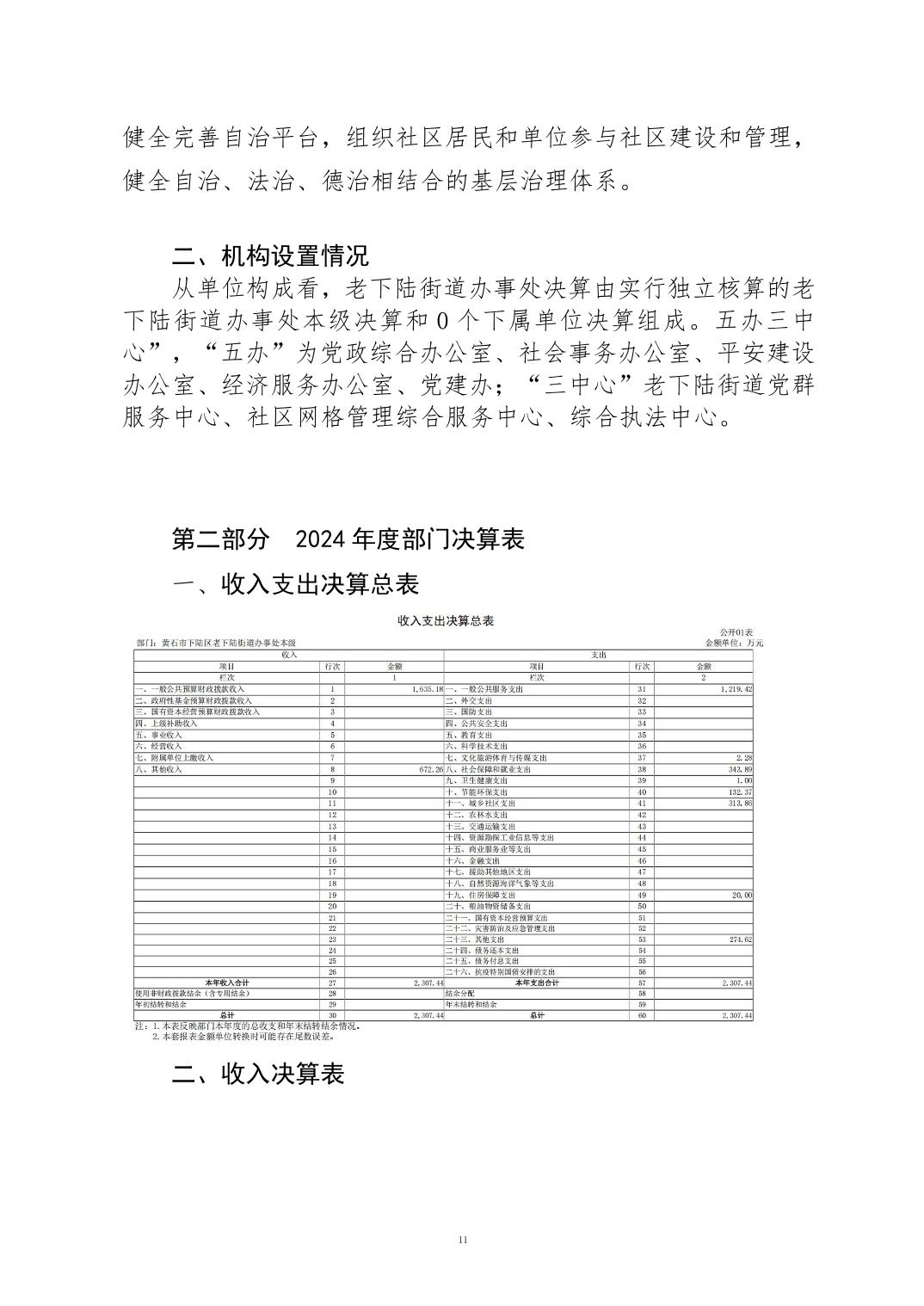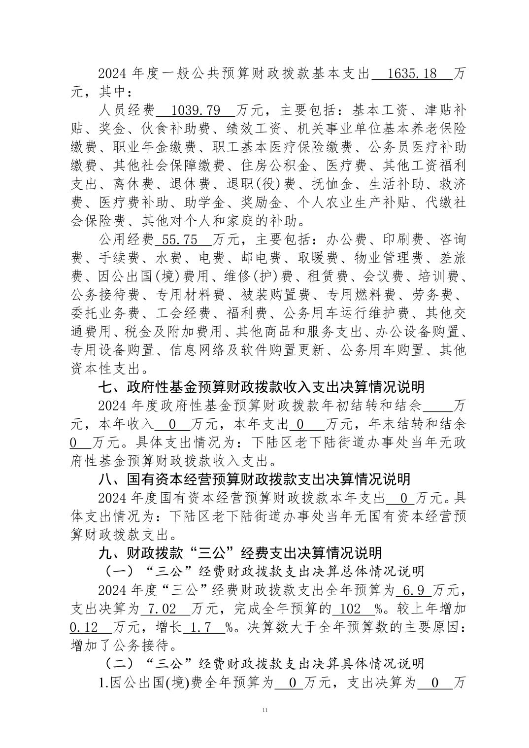 名 称: 下陆区老下陆街道办事处2024年度部门决算