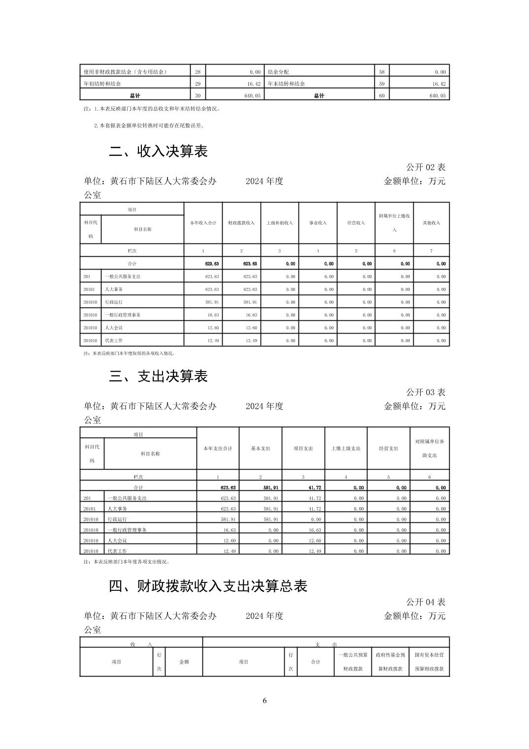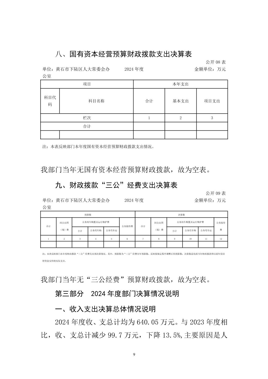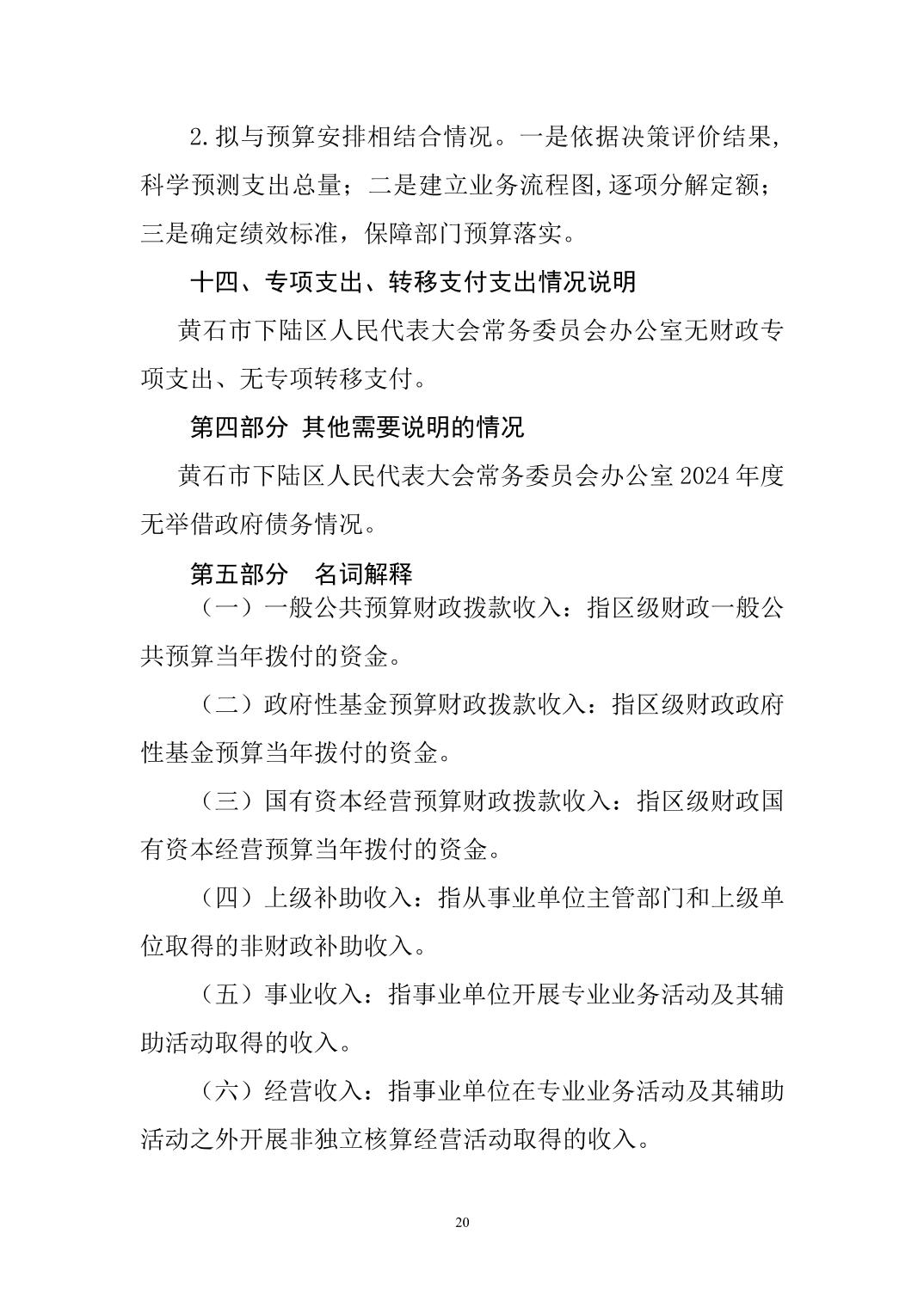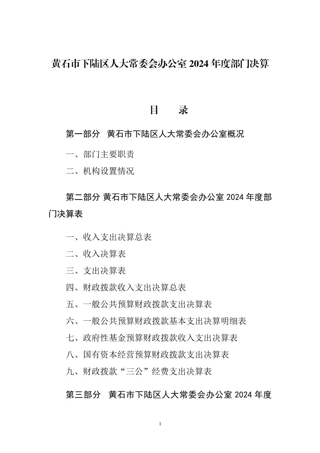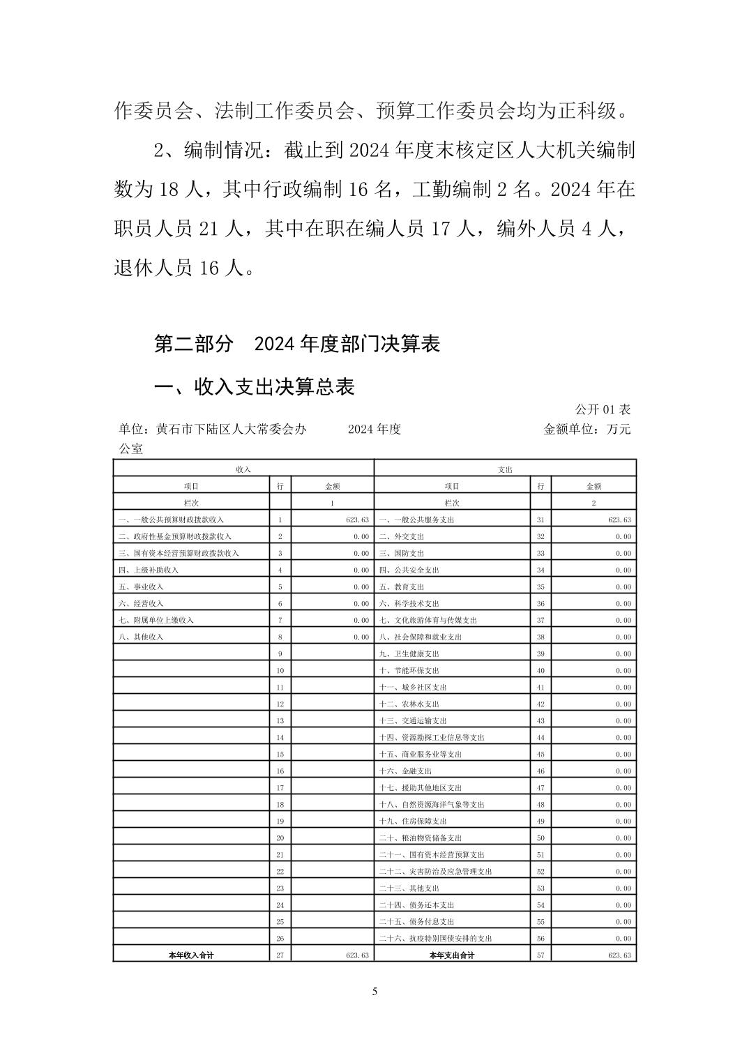 名 称: 下陆区人大常委会办公室2024年度部门决算