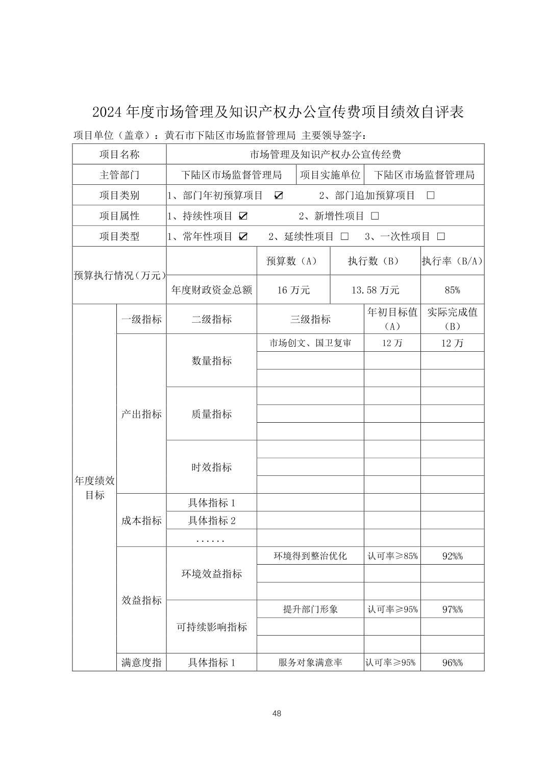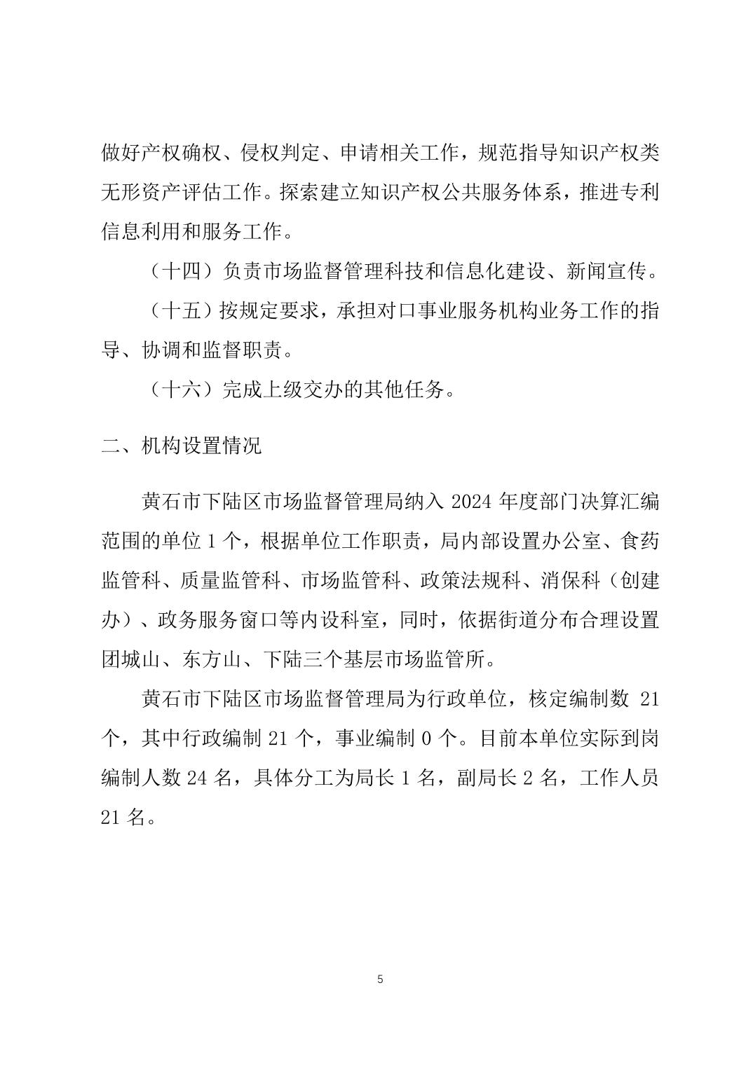 名 称: 下陆区市场监督管理局2024年度部门决算