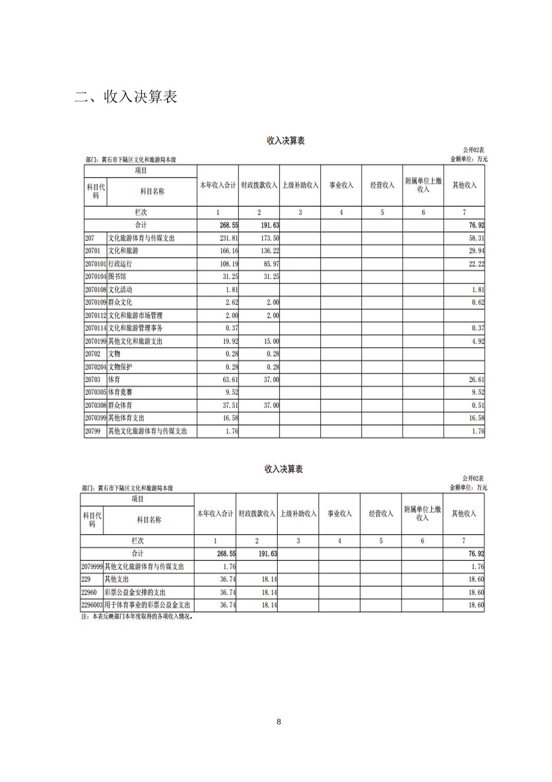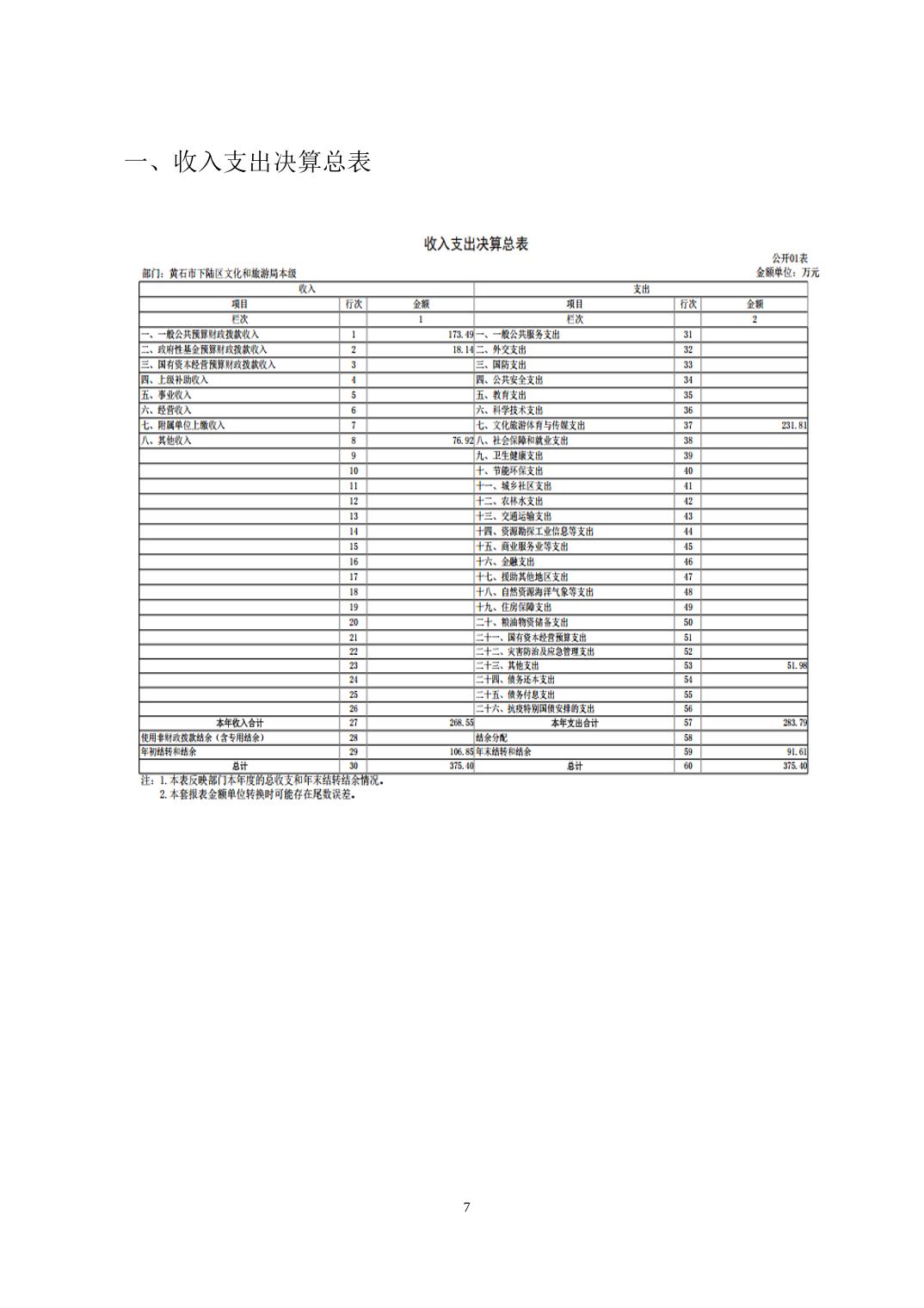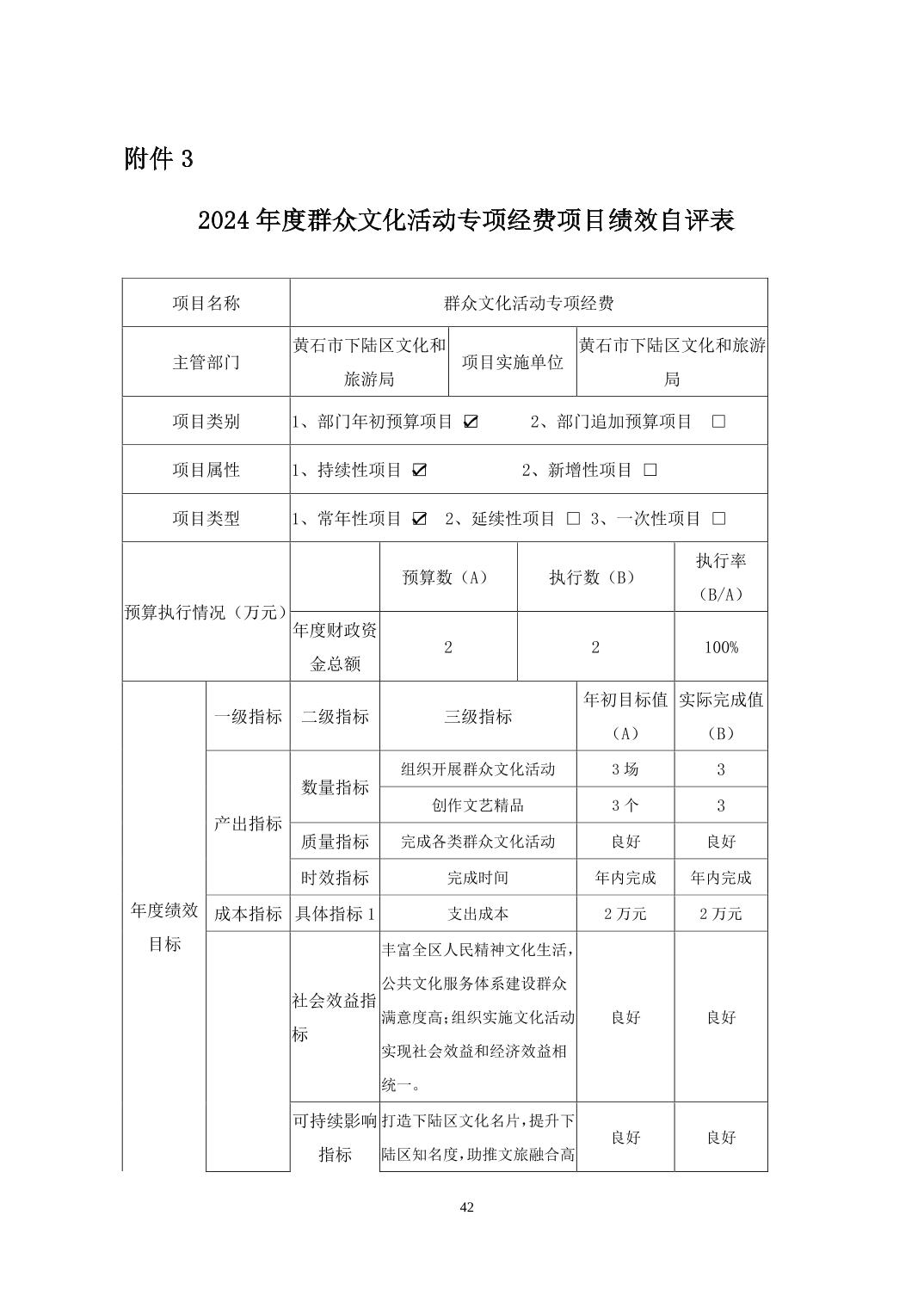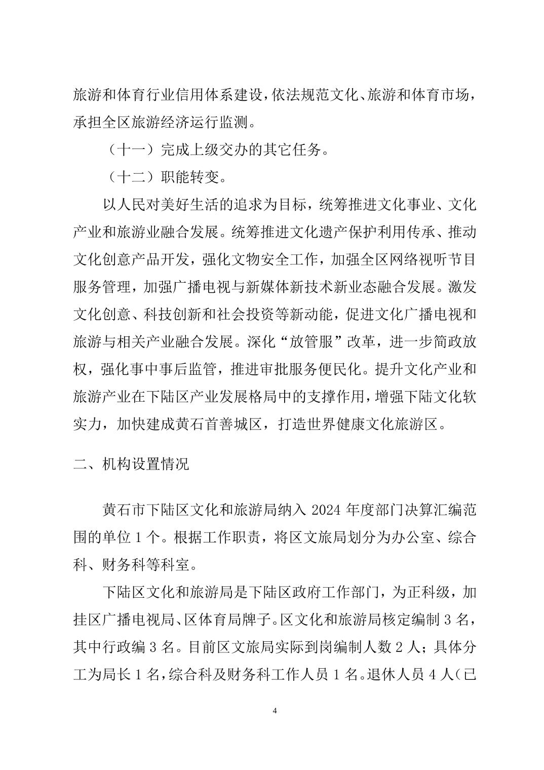 名 称: 下陆区文化和旅游局(本级)2024年度部门决算