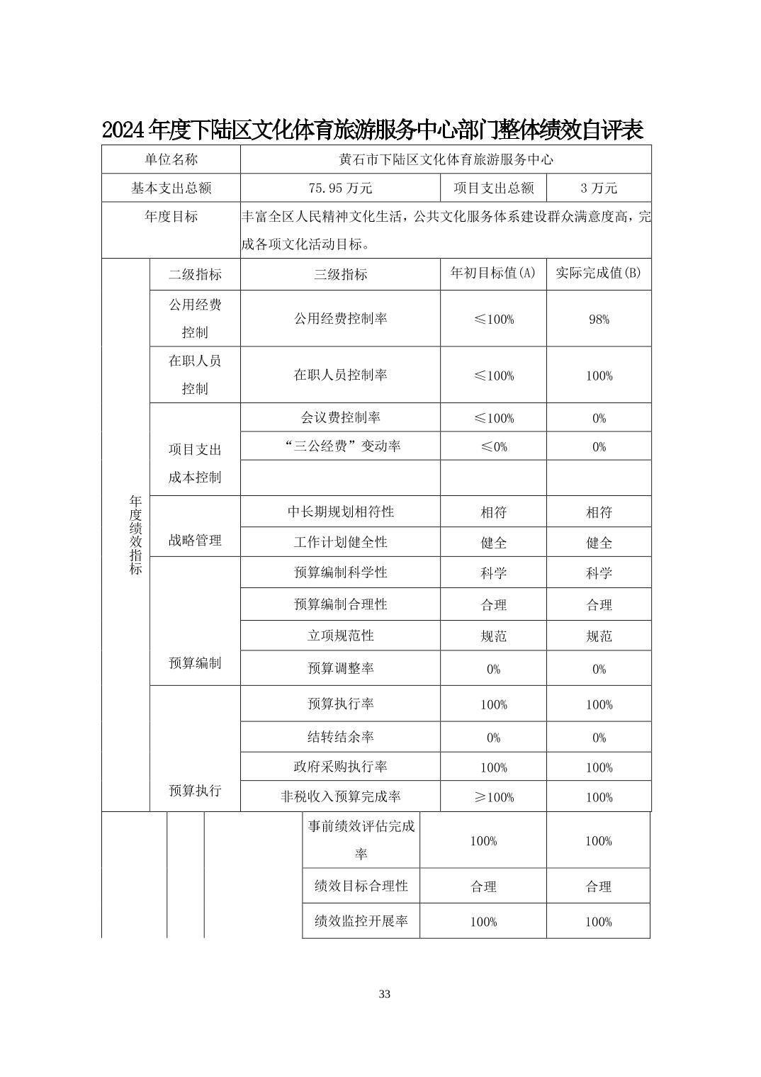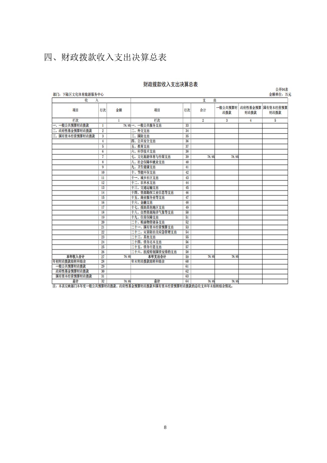 名 称: 下陆区文化体育旅游服务中心2024年度部门决算