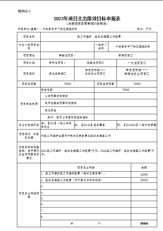 组工网维护、组织史编纂经费主要绩效目标为:第一,保证组工网正常运行;第二,完成组织史组织史的整理、核对、编写。
