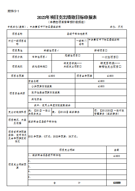根据预算绩效管理要求,区委组织部对2023年度重点预算项目开展绩效申报工作,共涉及重点项目9个,资金100万元。从预算资金的绩效目标来看,项目资金的使用主要围绕开展机关老干部活动、党建、人才及干部考察与培训、组工网维护等。