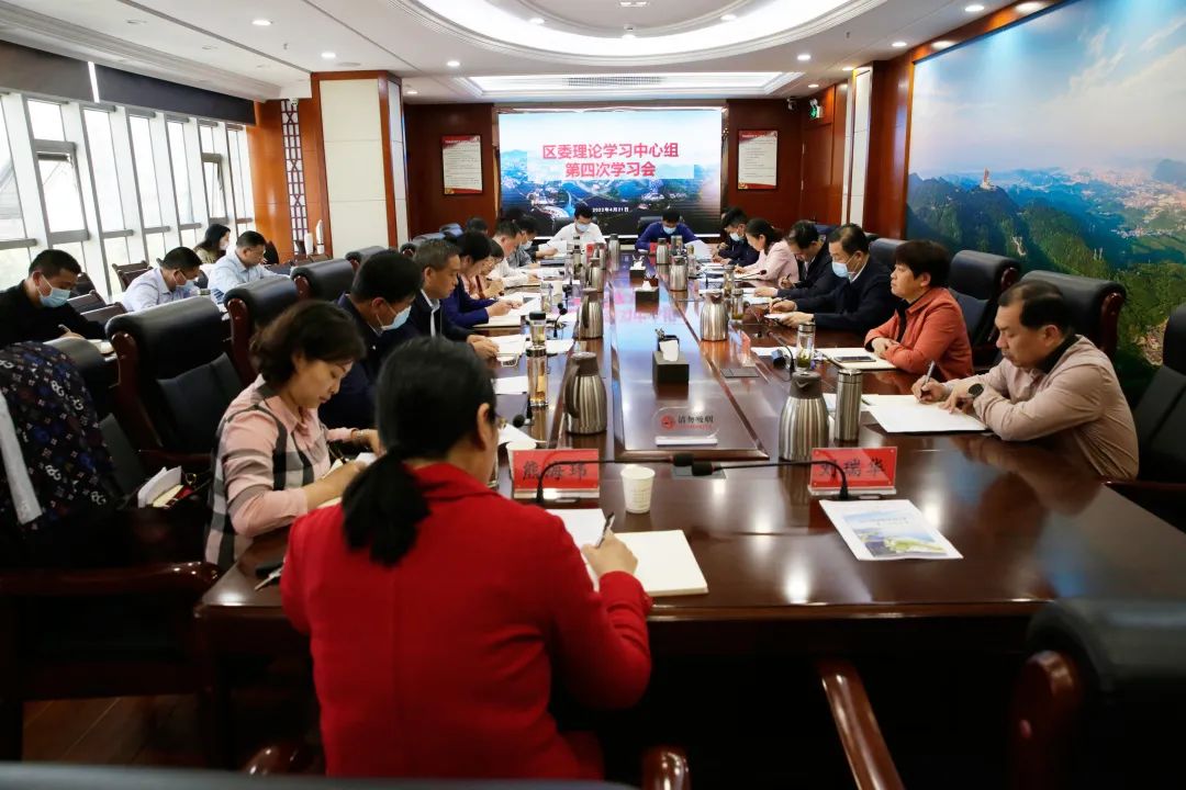 4月21日下午,下陆区2022年理论学习中心组第四次学习会在区政府四楼常委会议室举行,区委常委,区人大常委会、区政府、区政协领导班子成员,区法院院长、区检察院检察长约30人参加学习。
