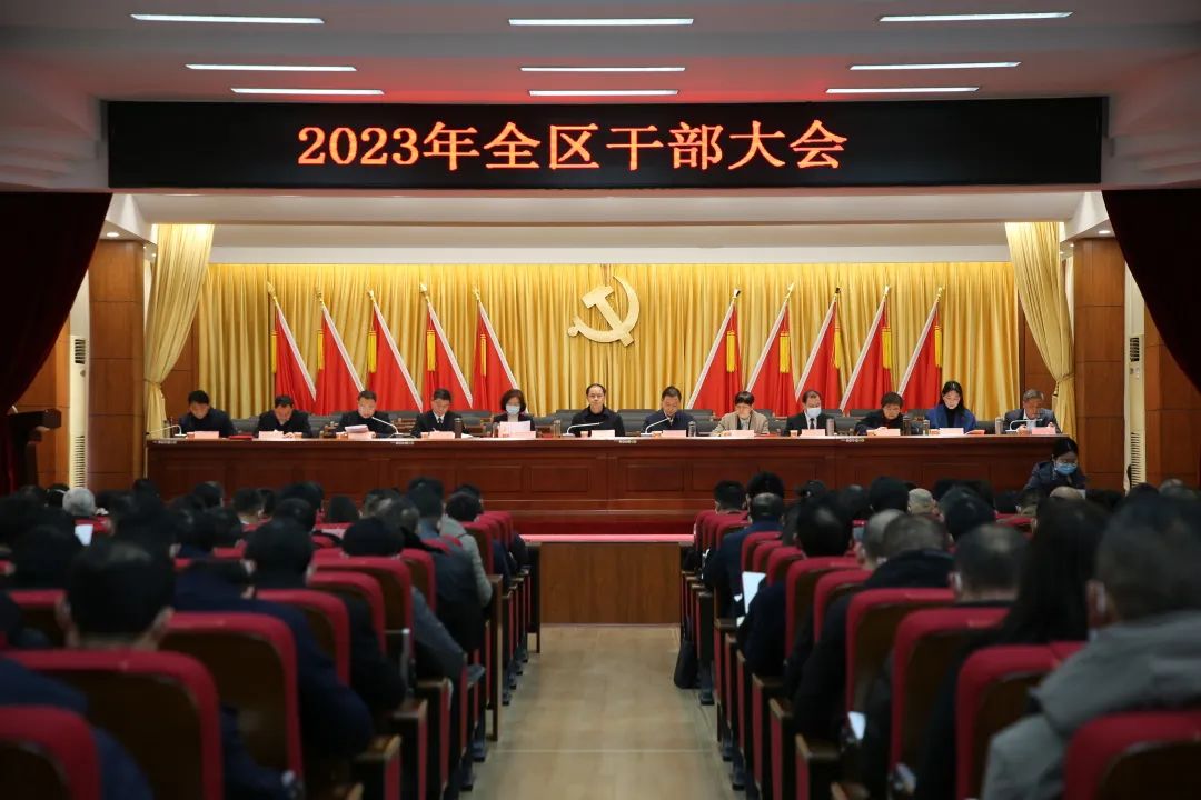 区委副书记、政法委书记陈罡通报了2022年党建引领基层社会治理示范区创建工作情况,并安排部署了2023年工作。区领导江隆胜和徐永安、王海兵分别就财源建设和一季度“开门红”、项目建设、招商引资工作作了安排。