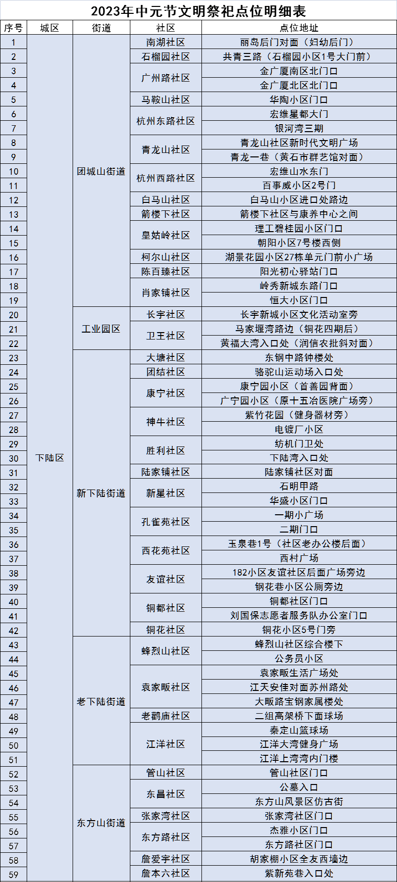 各社区设置1-2个临时文明祭祀点,进行文明祭祀并统一收集、登记居民祭祀品;马鞍山公墓及陆平村华家湾临时墓园作为2023年集中焚烧点位。