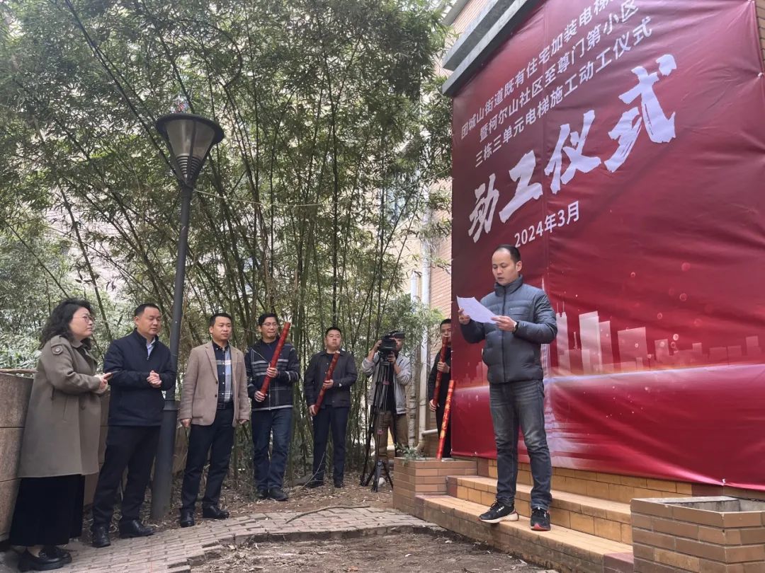 团城山街道在至尊门第小区举办既有住宅加装电梯集中开工仪式,