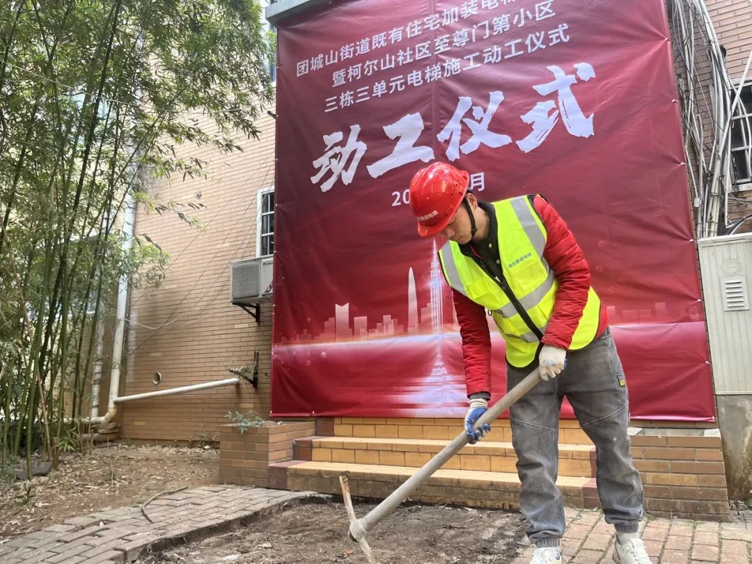 “这个电梯能够顺利开工,真的感谢各级政府和相关部门,特别是团城山街办和柯尔山社区,他们前后来实地勘察和指导了十多次,我们这改水改电涉及部门多,还有管线要迁移,涉及居民邻里都要协调,他们都帮了我们不少忙。”至尊门第三栋3单元电梯加装自改委负责人黄鹏程说。