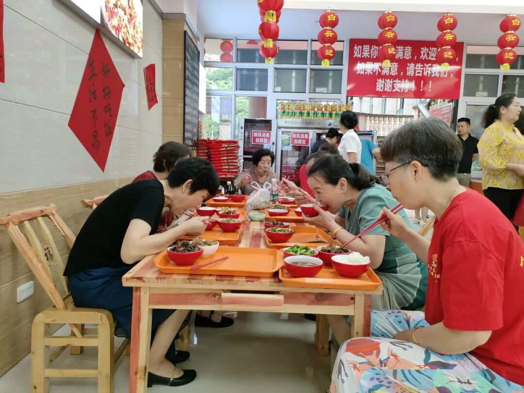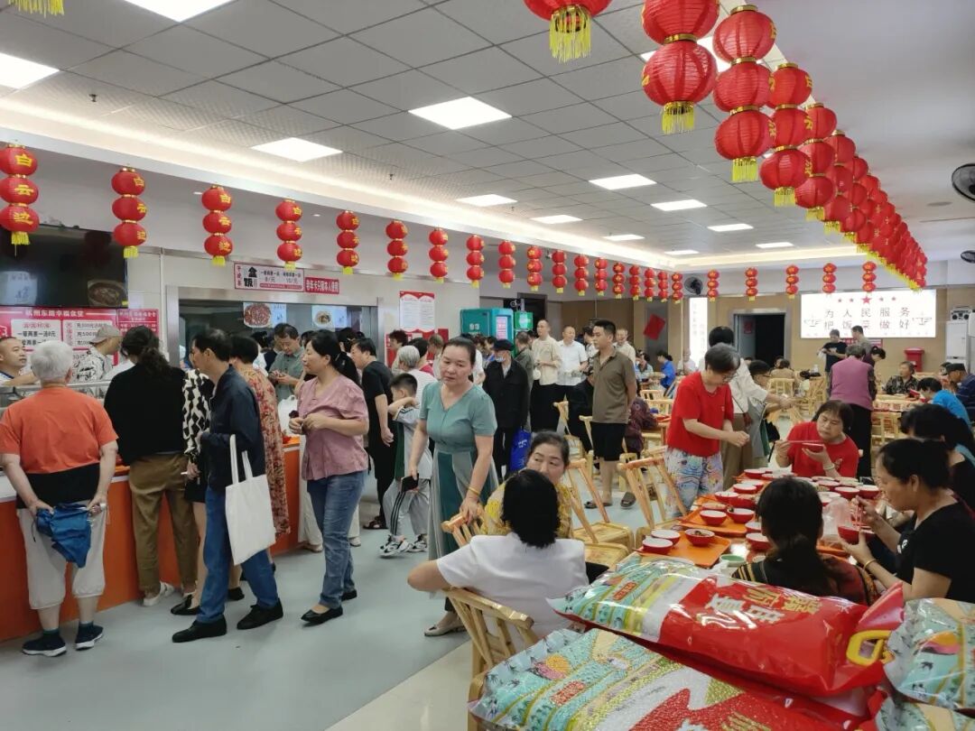 在开业当天,热情的食客们几乎“霸占”了就餐区域。“这套餐几多钱咧,比自己做划算多了。”“就在家楼下,我们都不用做饭了啦”.....大排长龙的队伍里,面对窗明几净的“明厨亮灶”,街坊们时不时扯着嗓子唠唠家常。