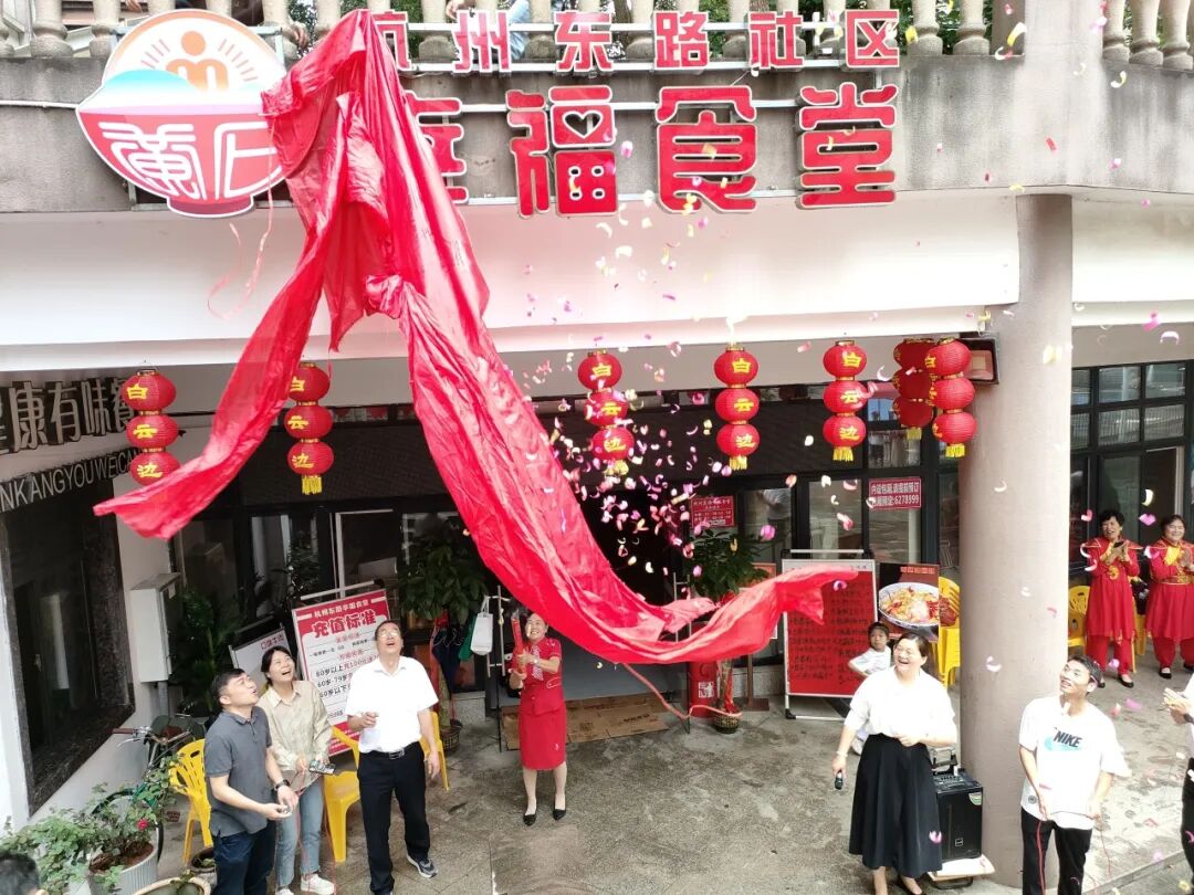 6月25日,杭州东路社区幸福食堂门前热闹非凡,热闹喜庆的威风锣鼓在宏维星都小区泳池旁敲响,为社区幸福食堂开业助威。一直期盼着食堂开业的老人们纷纷前来捧场,现场体验优惠充值活动。
