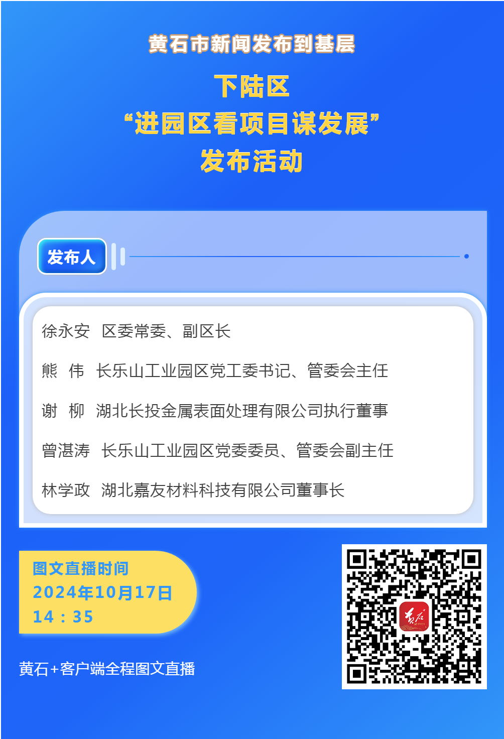 此次发布会将围绕湖北新型绿色智能表面处理产业园产业定位、基础设施、政策支持、招商情况等相关内容进行发布,并回答企业、媒体、群众关心的问题。