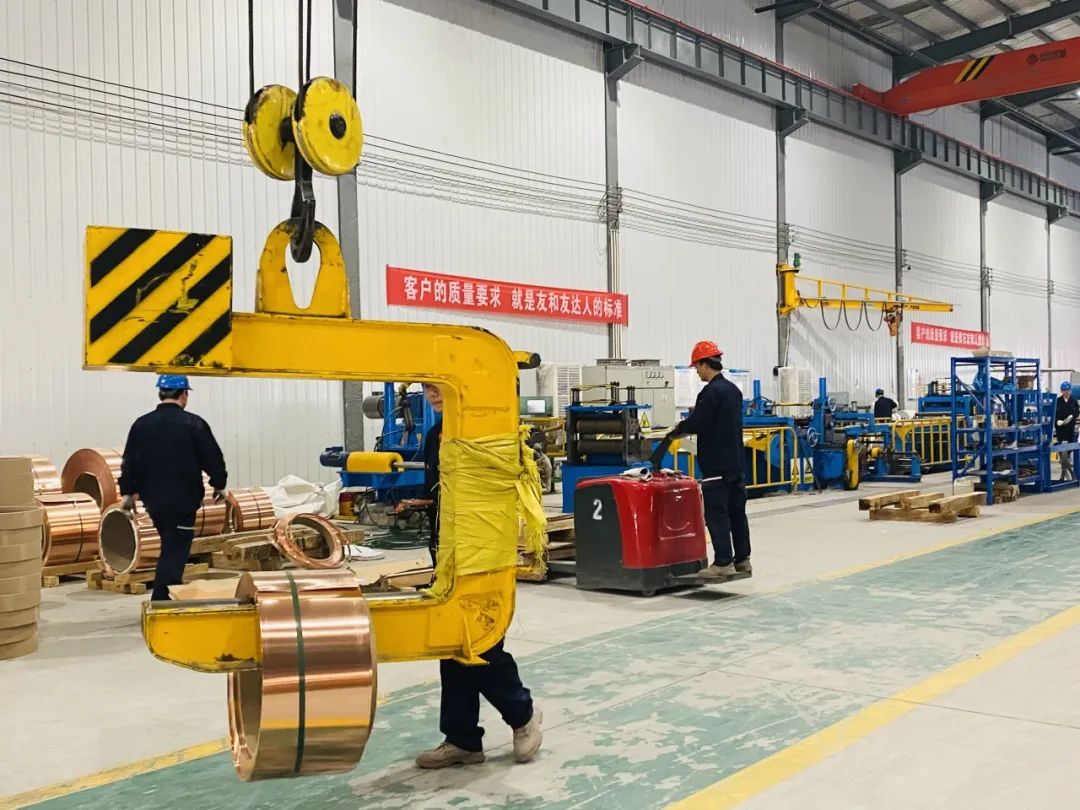 以新质生产力引领企业高质量发展。今年,友和铜业不仅在智能化生产上取得了显著进展,还新引进设备以满足窄条生产的需求,同时对辅助设施设备进行技术开发和升级改造,进一步提升产品整体质量。未来,友和铜业“工业4.0”升级项目全部完成后,公司将成为一个具有产线智能化、运输智能化、仓储智能化以及数据云端呈现等特点的智能数字工厂。