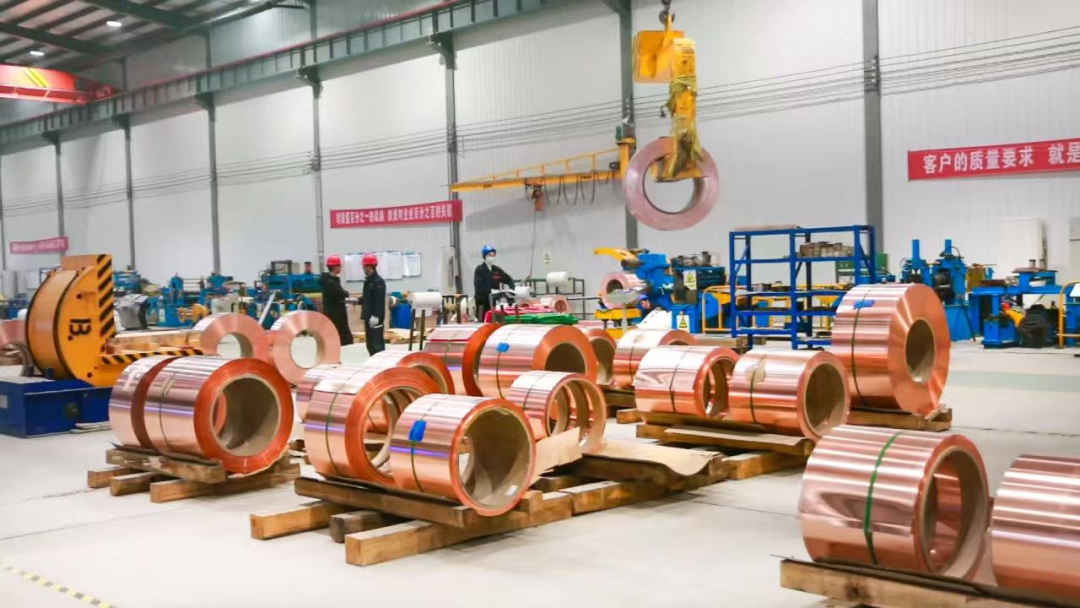 该公司地处高端装备制造产业园,通过改进工艺使得铜带延伸率提升约10%,生产的铜带产品宽度可从30毫米延展至1.2米。近几年,友和铜业围绕延伸下陆铜产业链,深耕铜带加工,逐渐将原本在洛阳加工铜带的规模前移至黄石生产区域实施,上游与华中铜业形成战略合作,实现公司“北铝南铜”的战略布局,下游依靠武汉城市圈和黄石物流枢纽地位,辐射大江南北。