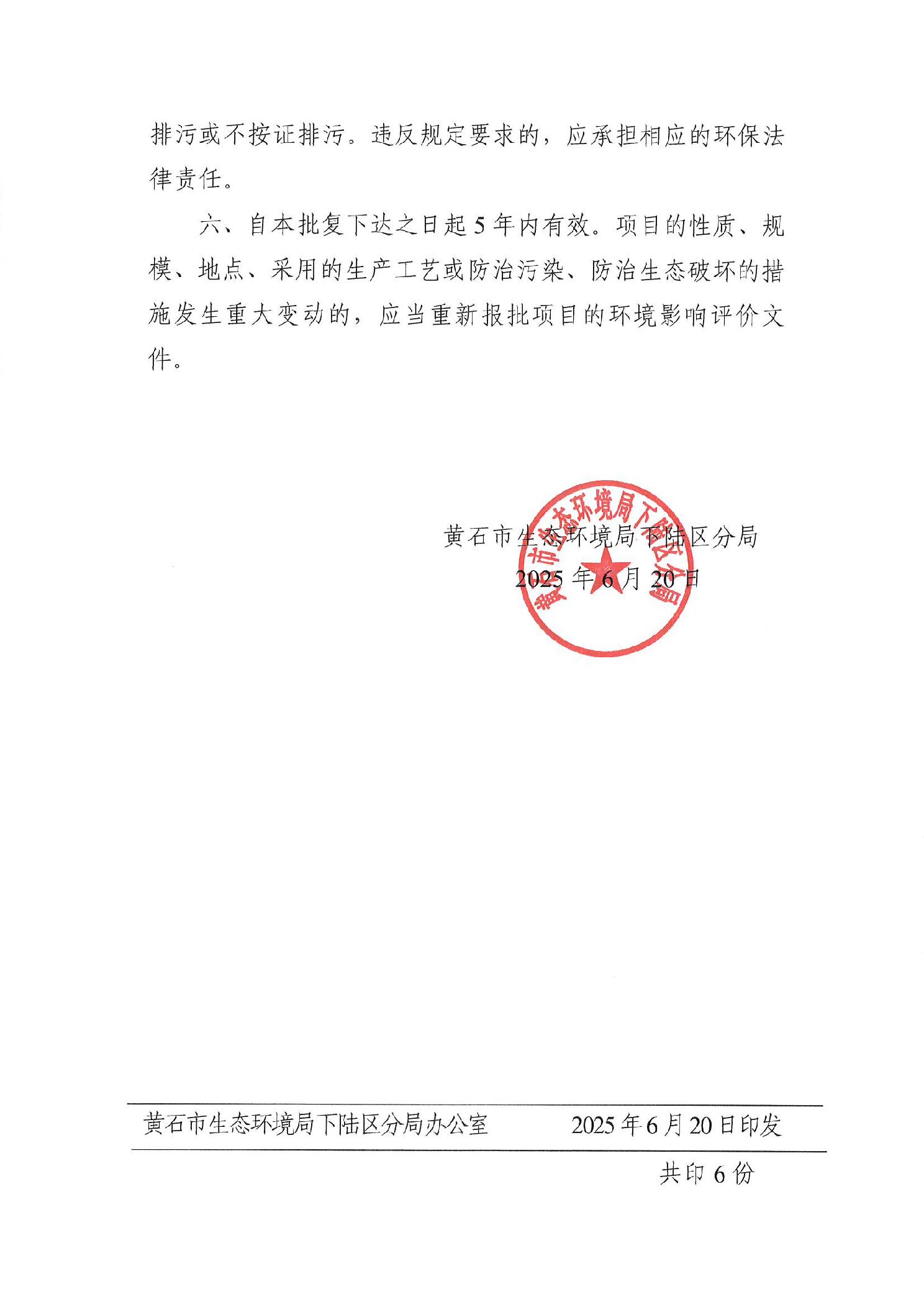 索 引 号: 000014349/2025-89971 发布日期: 2025-06-20 发布机构: 下陆区生态环境分局