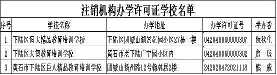 下陆区教育局关于注销部分校外培训机构办学许可证的决定