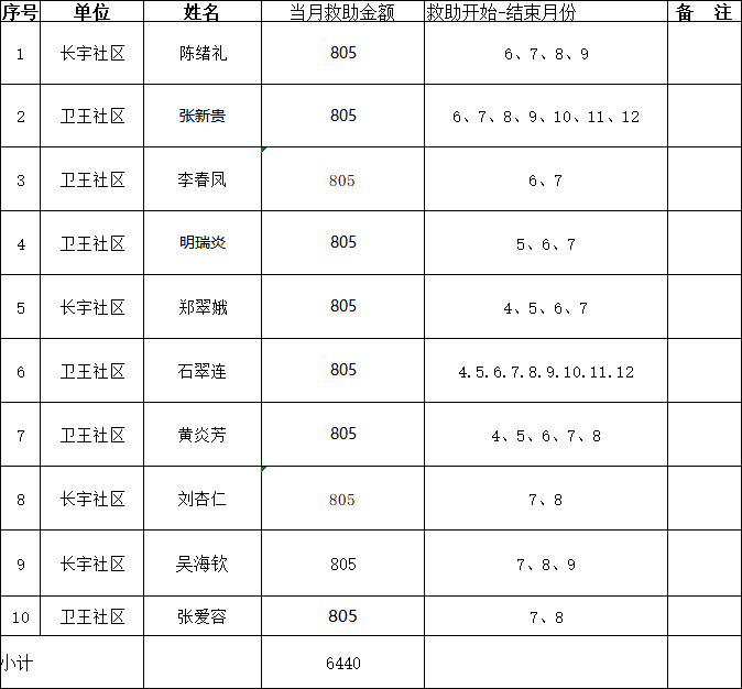 名 称: 下陆区临时救助花名册(2025年7月)