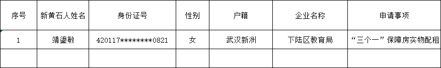 下陆区新黄石人“三个一”保障房申请实物配租公示
