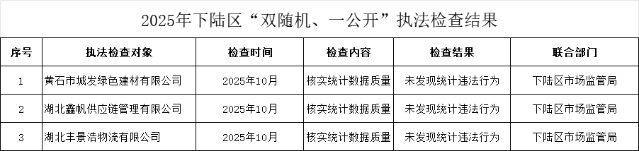 名 称: 2025年下陆区统计局“双随机、一公开”执法检查结果
