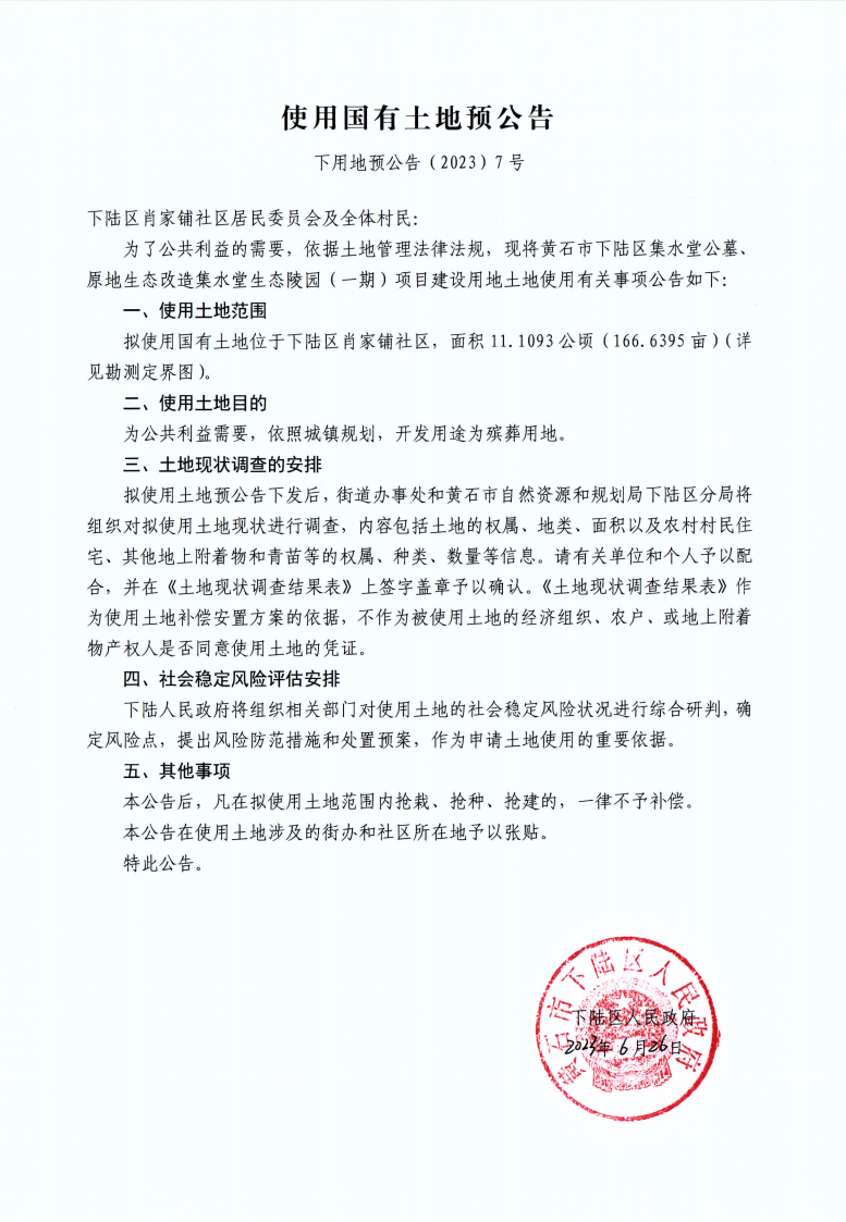 使用国有土地预公告