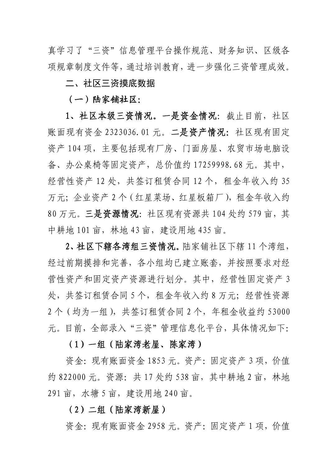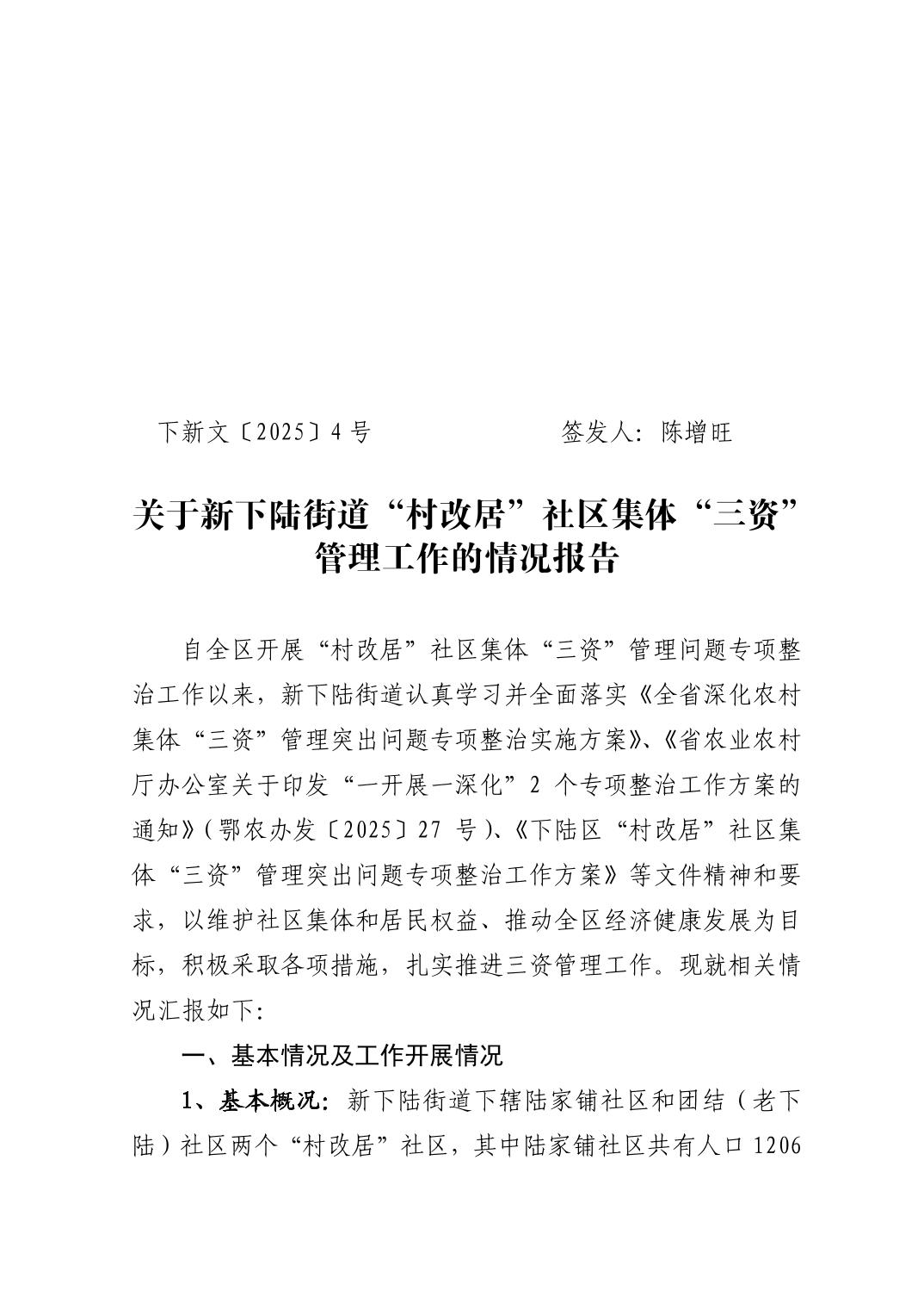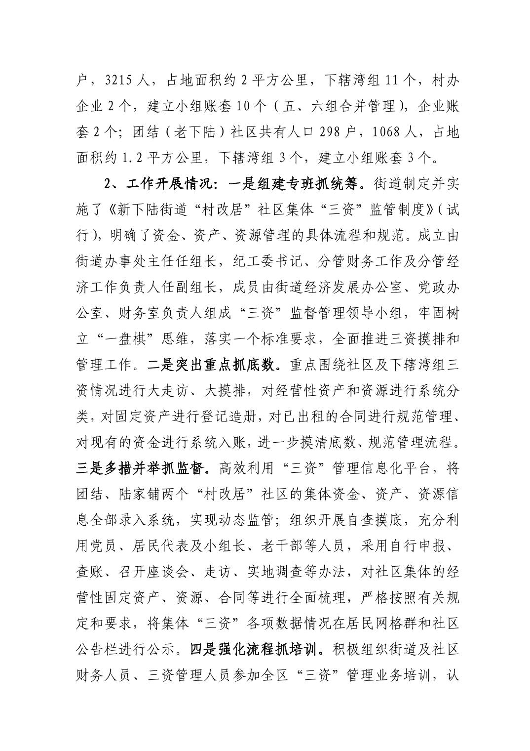 名 称: 关于新下陆街道“村改居”社区集体“三资”管理工作情况报告
