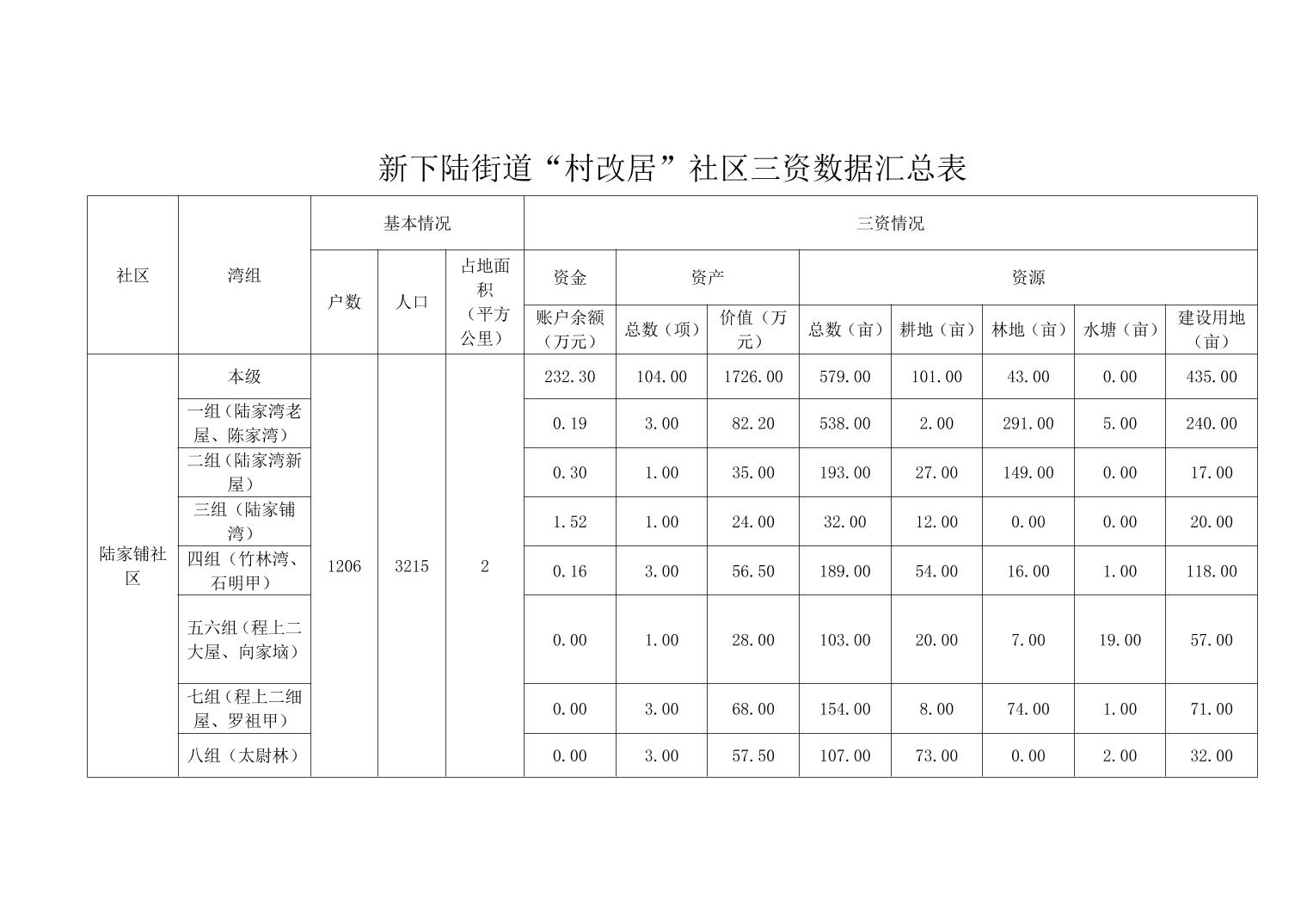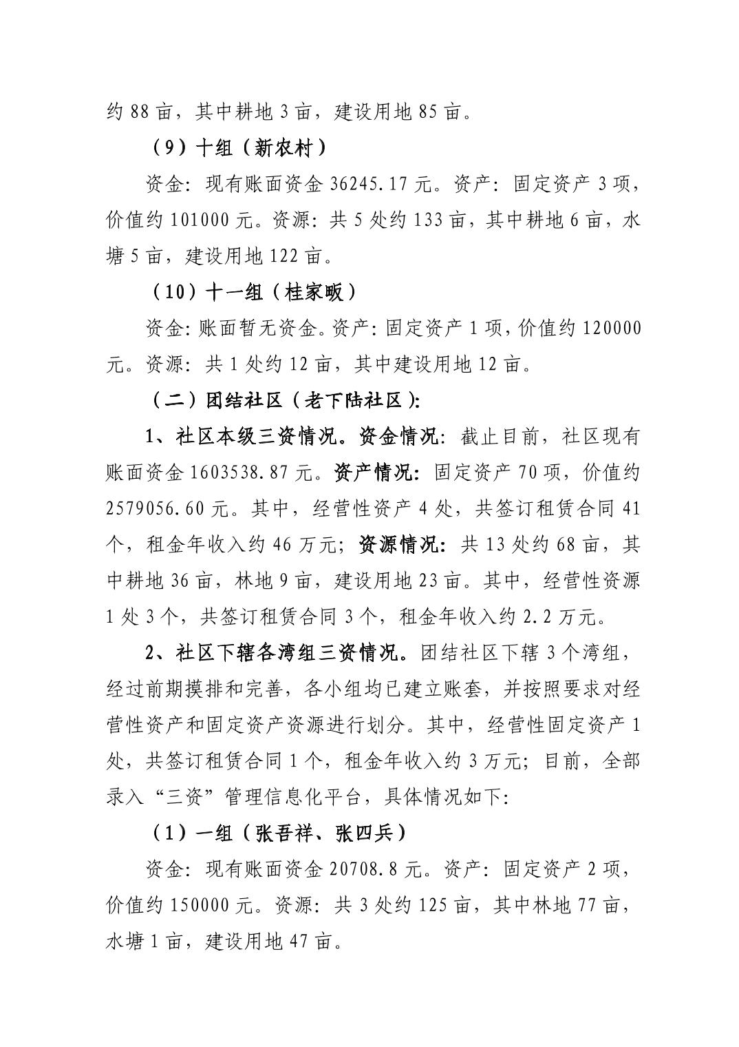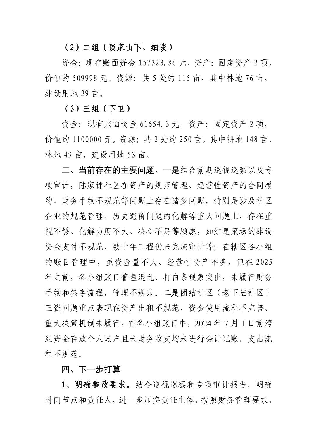 名 称: 关于新下陆街道“村改居”社区集体“三资”管理工作情况报告