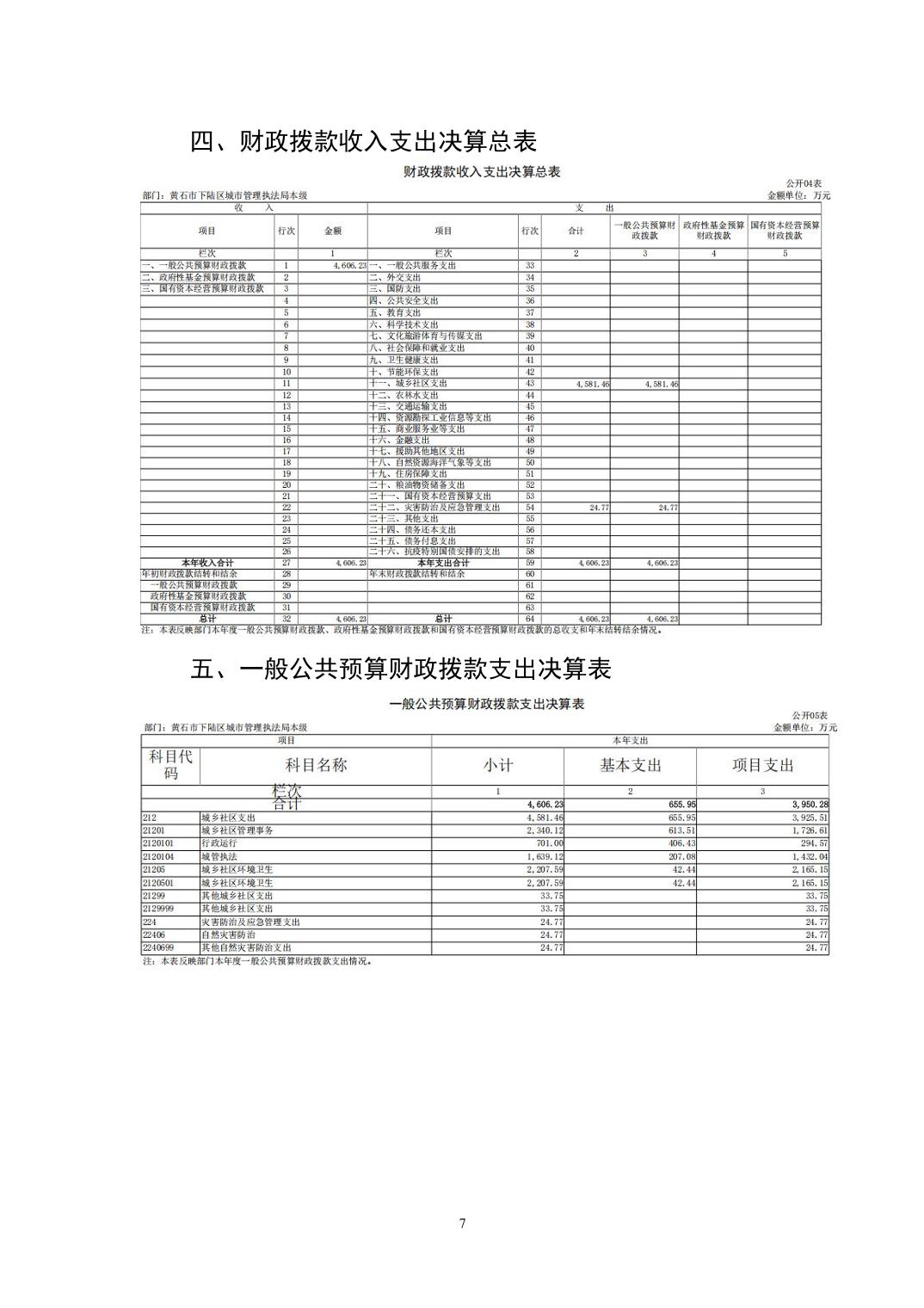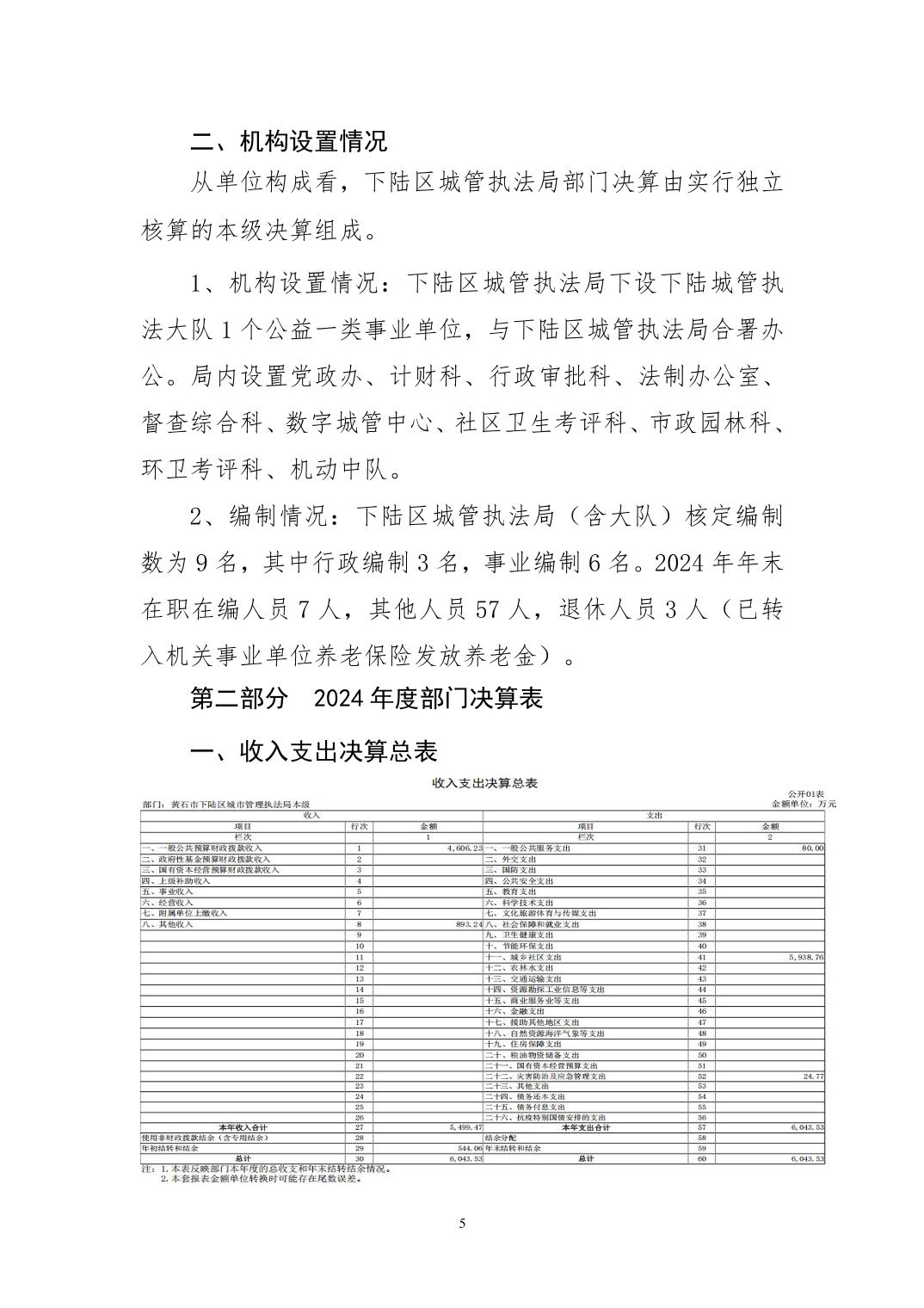 名 称: 下陆区城市管理执法局2024年度部门决算