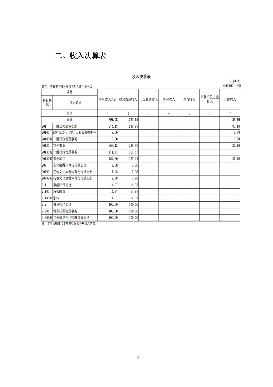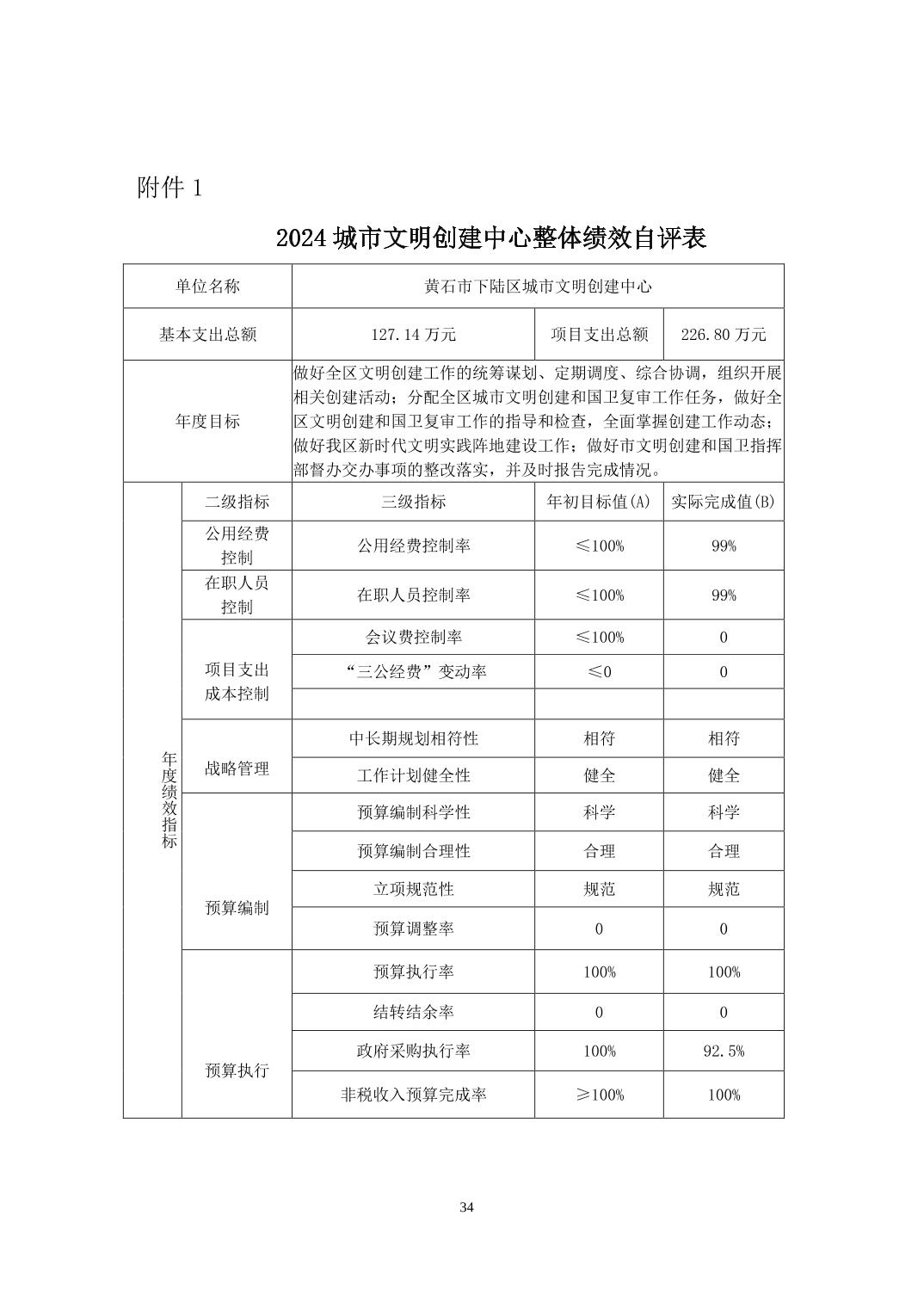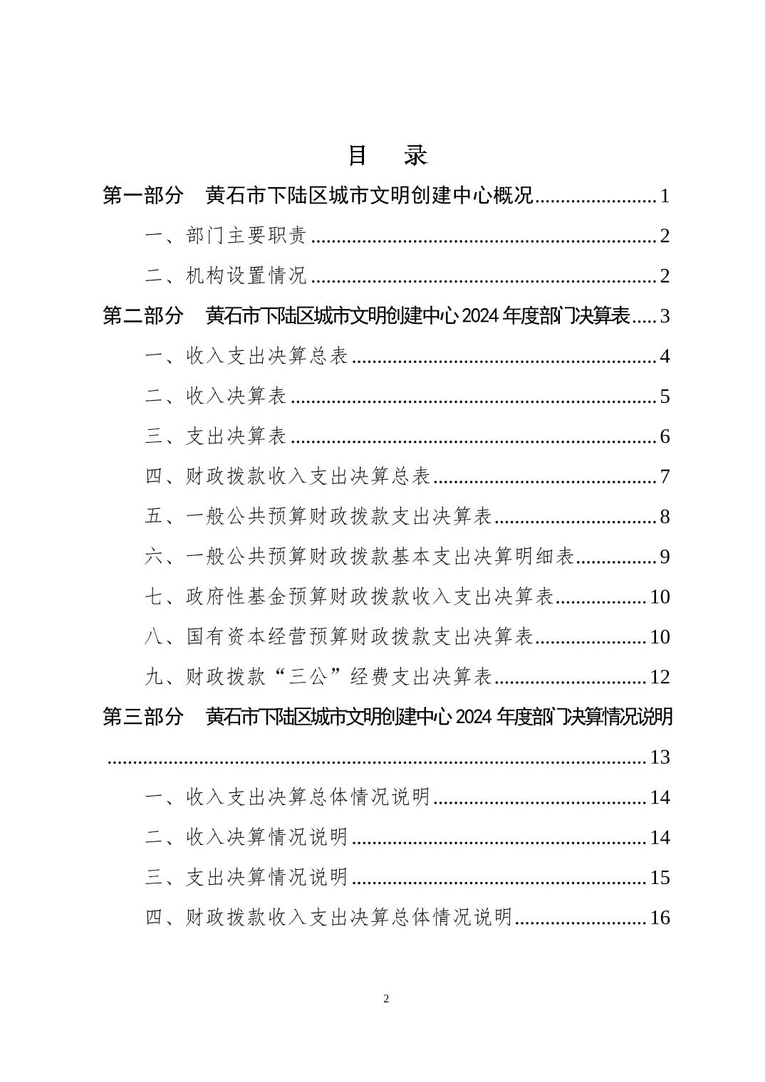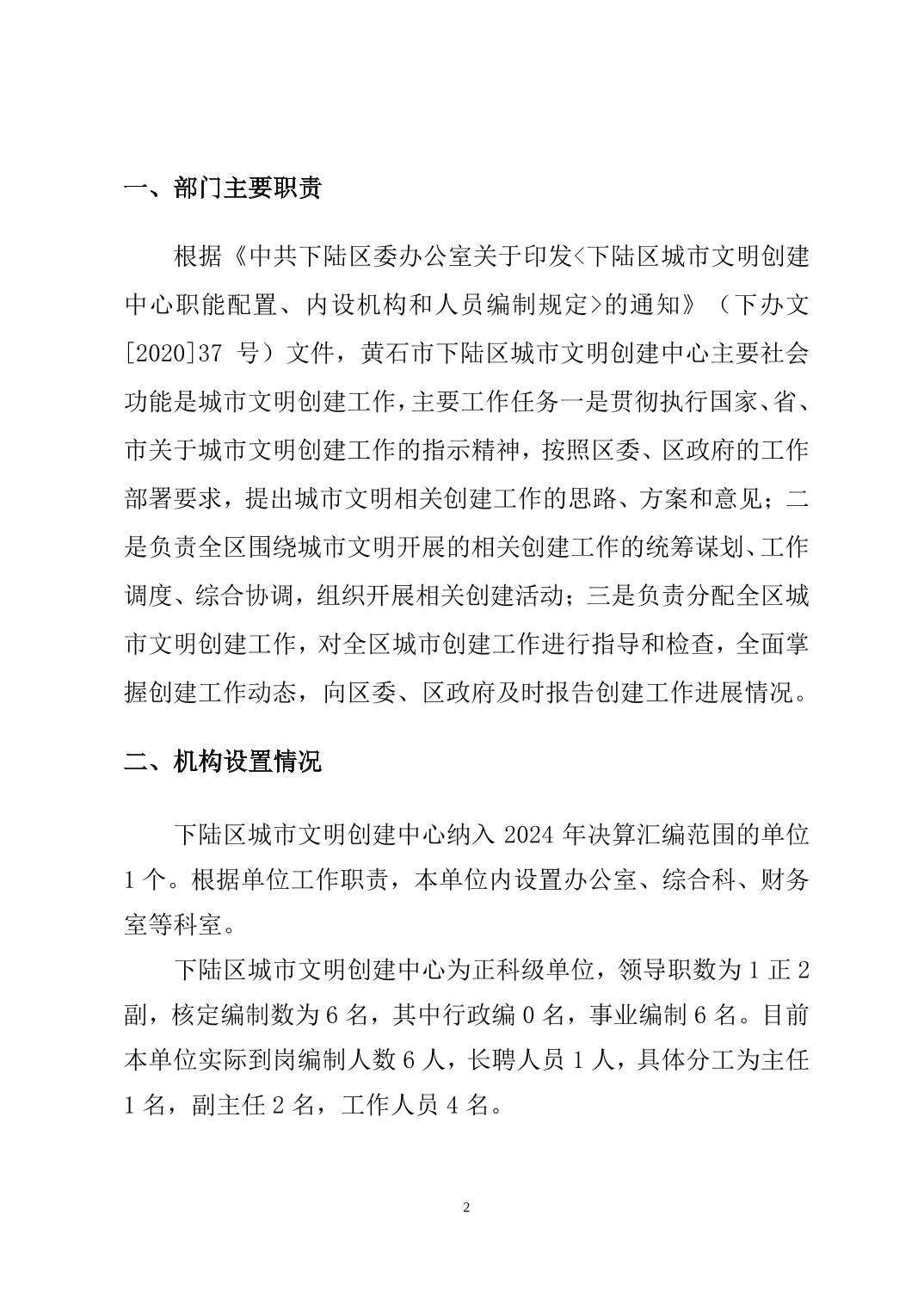 名 称: 下陆区城市文明创建中心2024年度部门决算