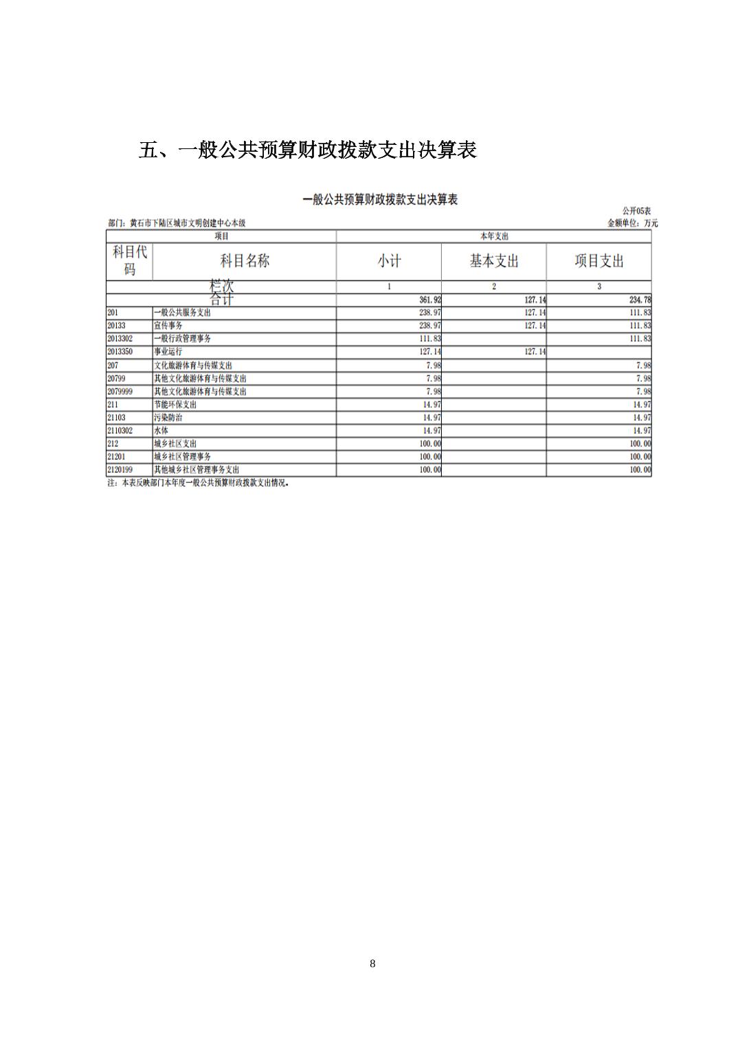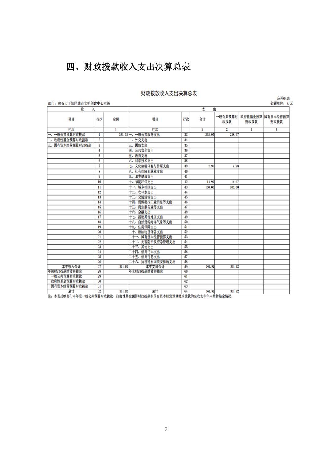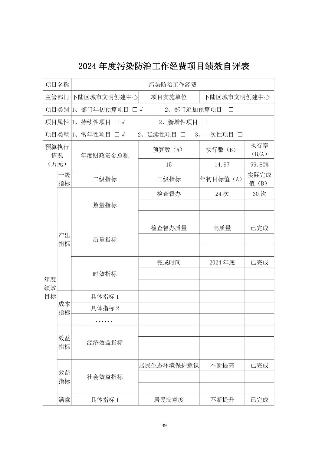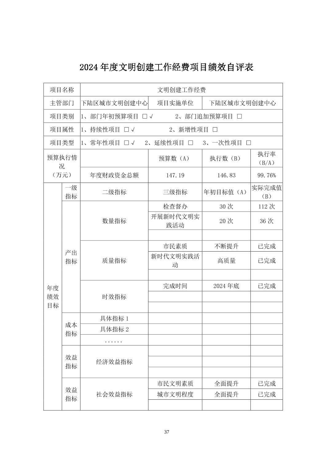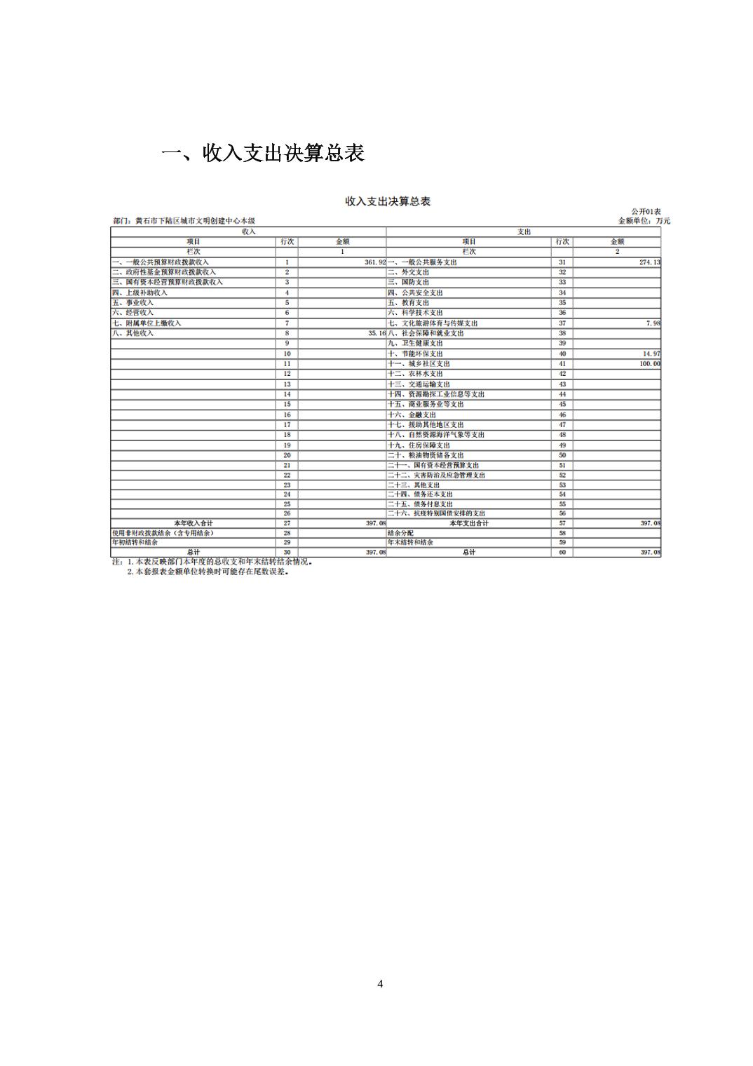 名 称: 下陆区城市文明创建中心2024年度部门决算