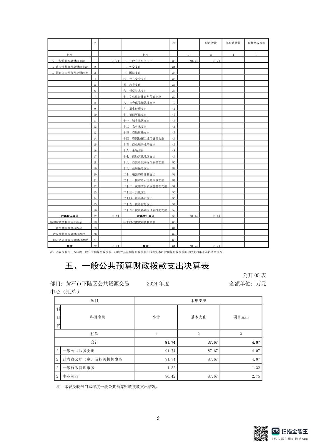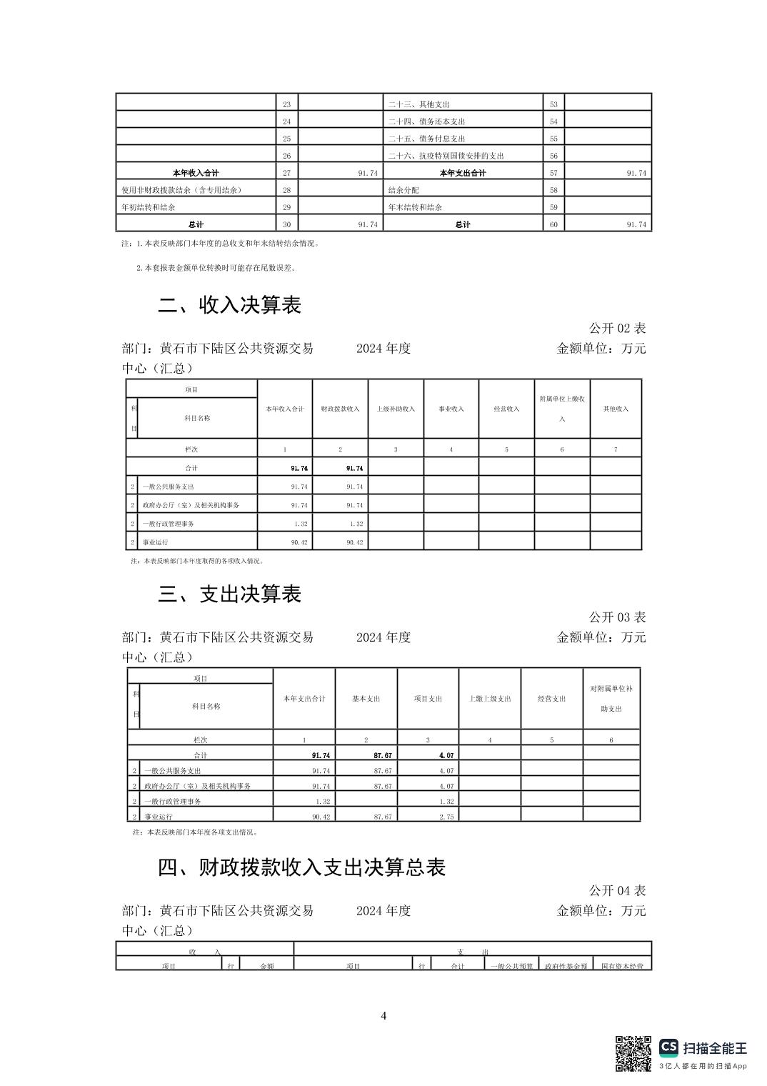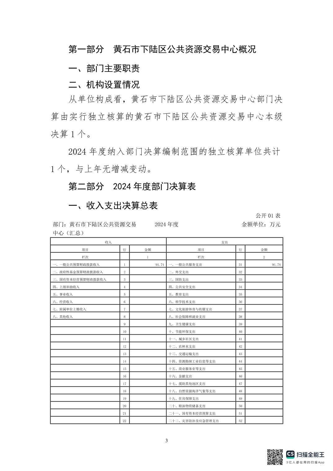 名 称: 2024年度下陆区公共资源交易中心决算