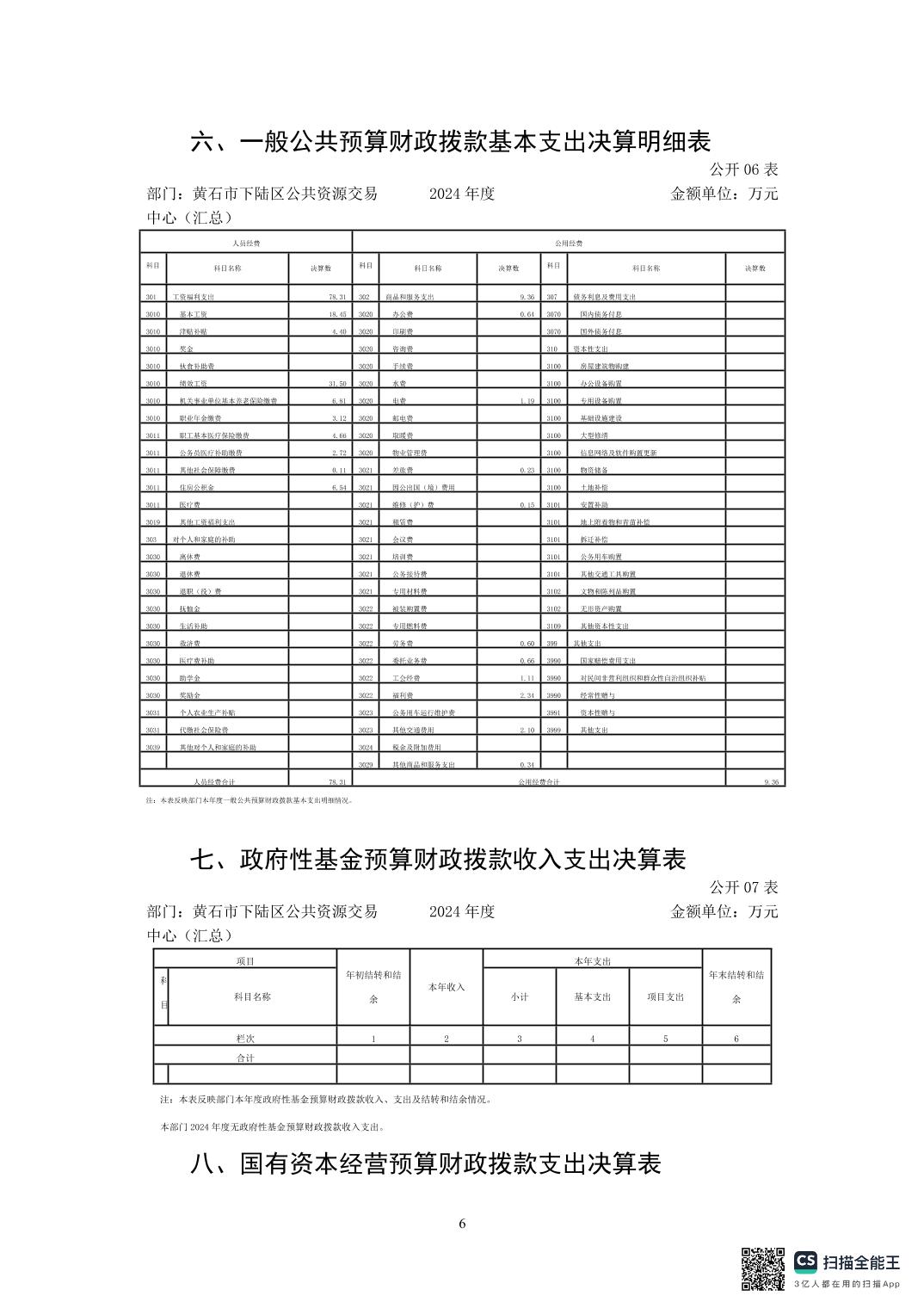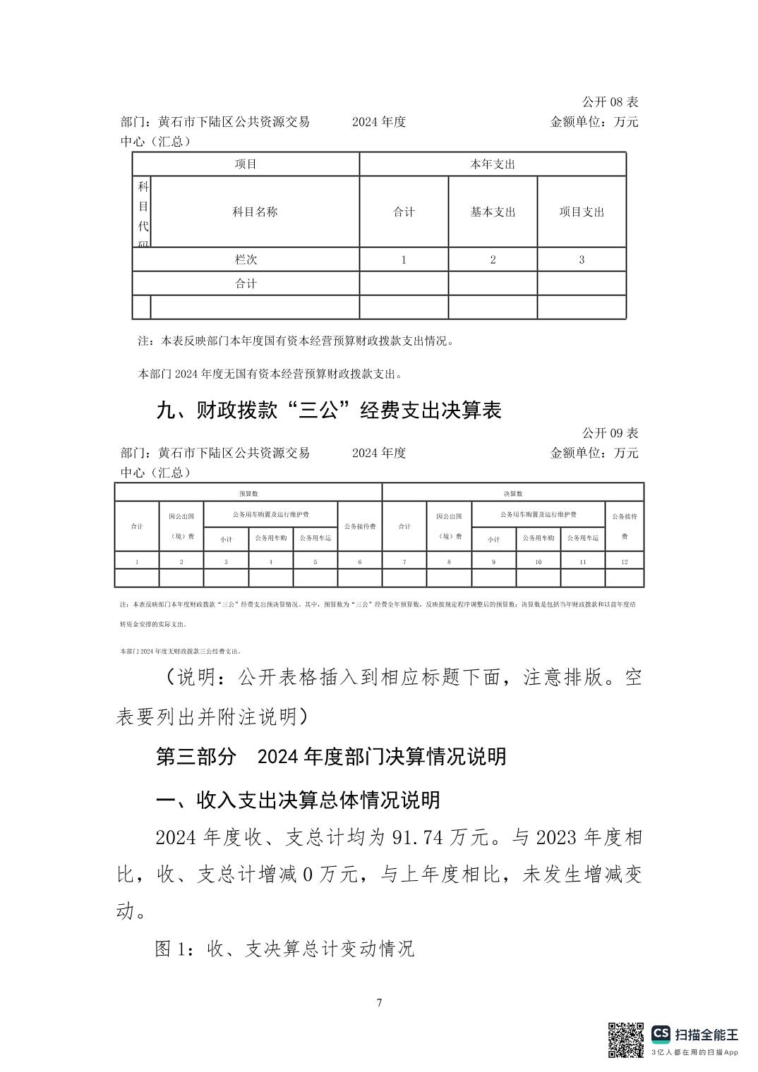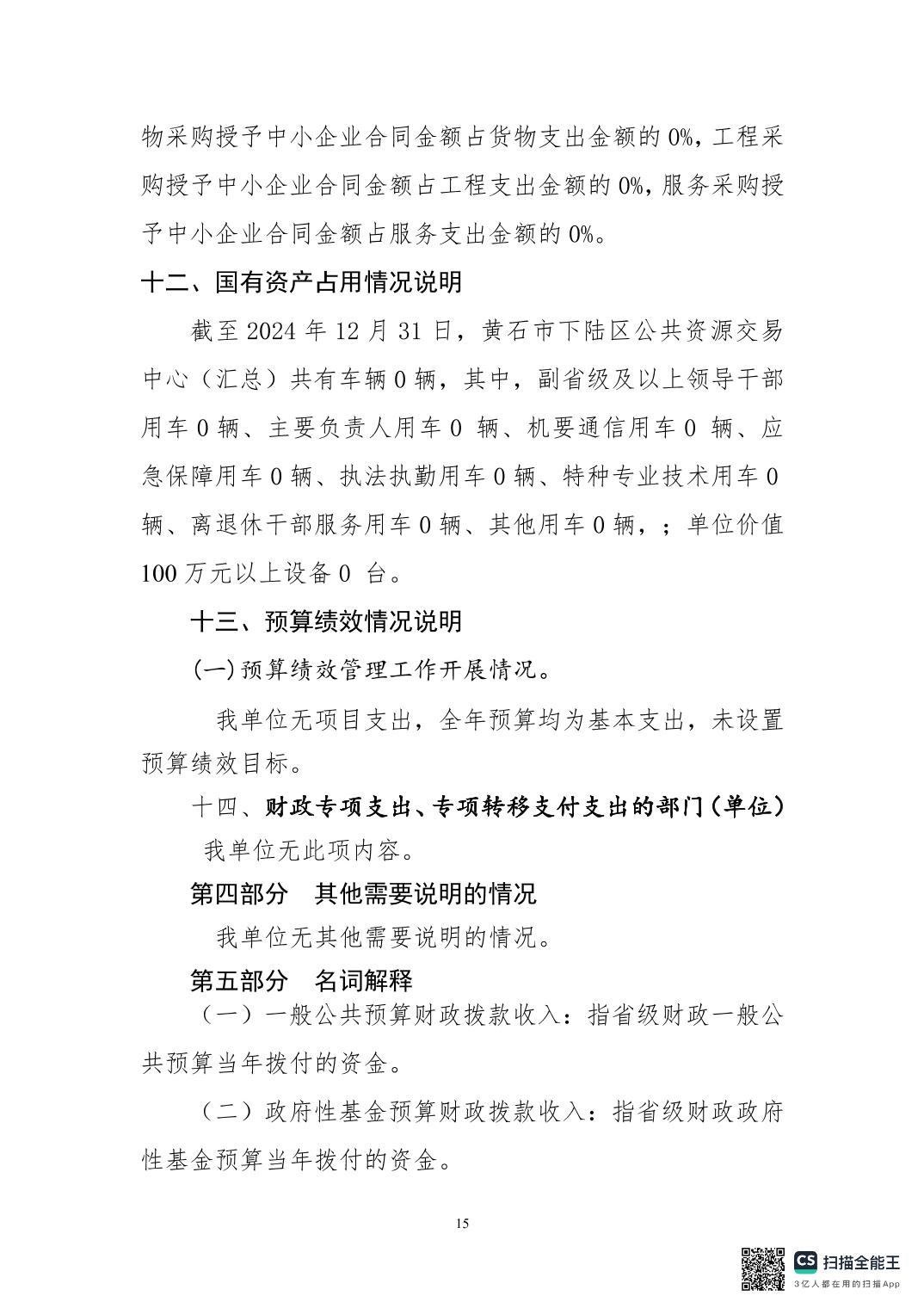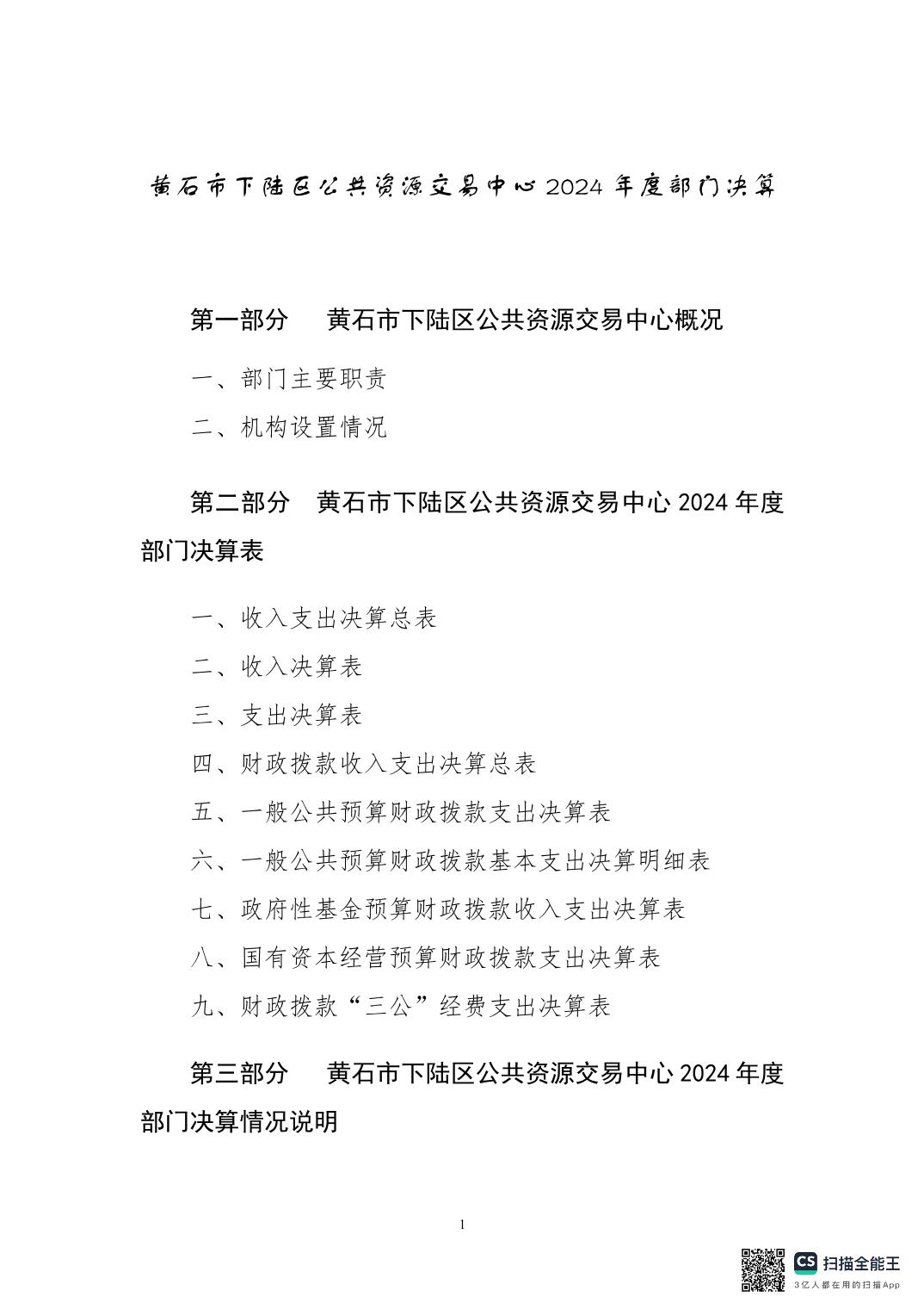 名 称: 2024年度下陆区公共资源交易中心决算