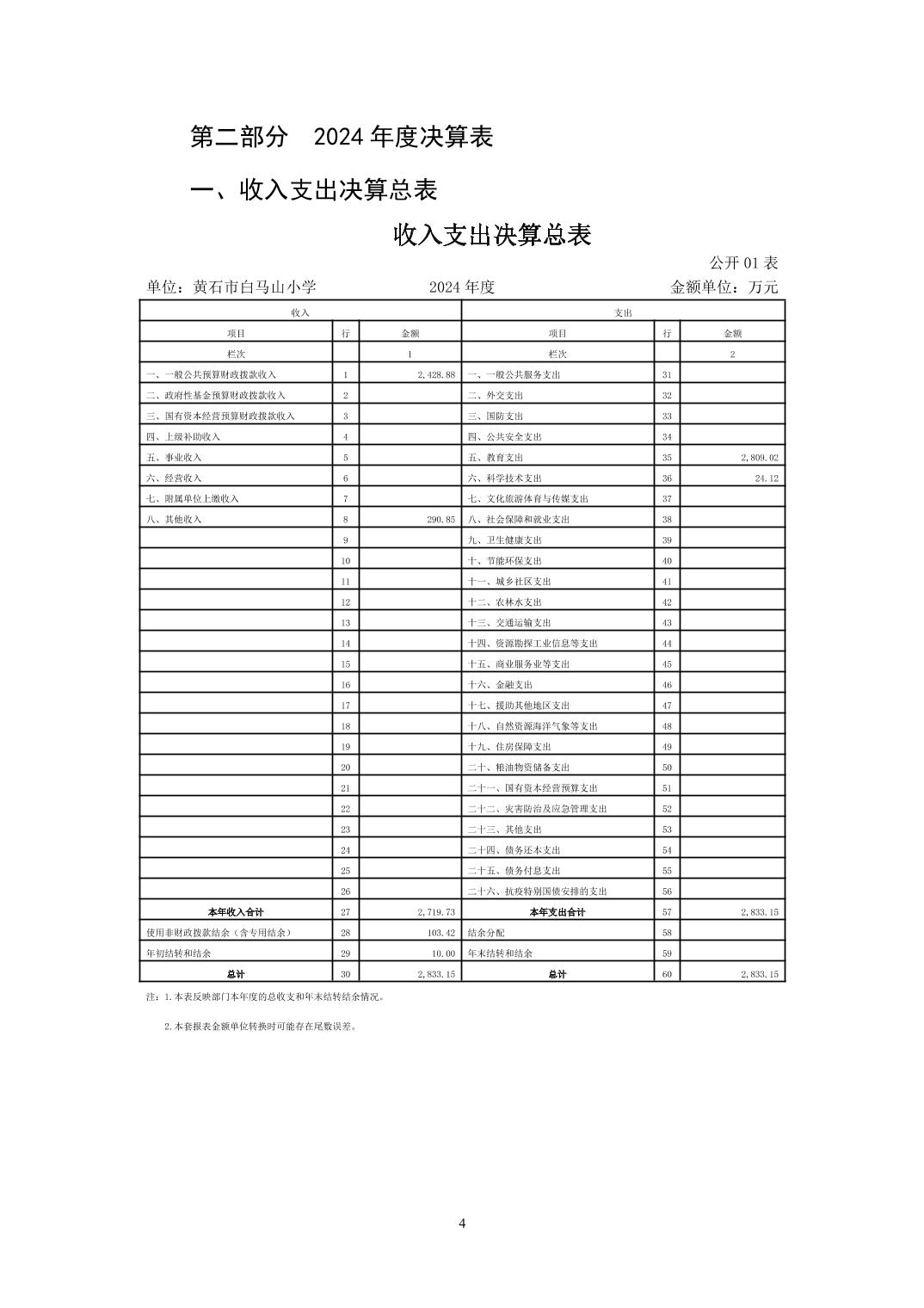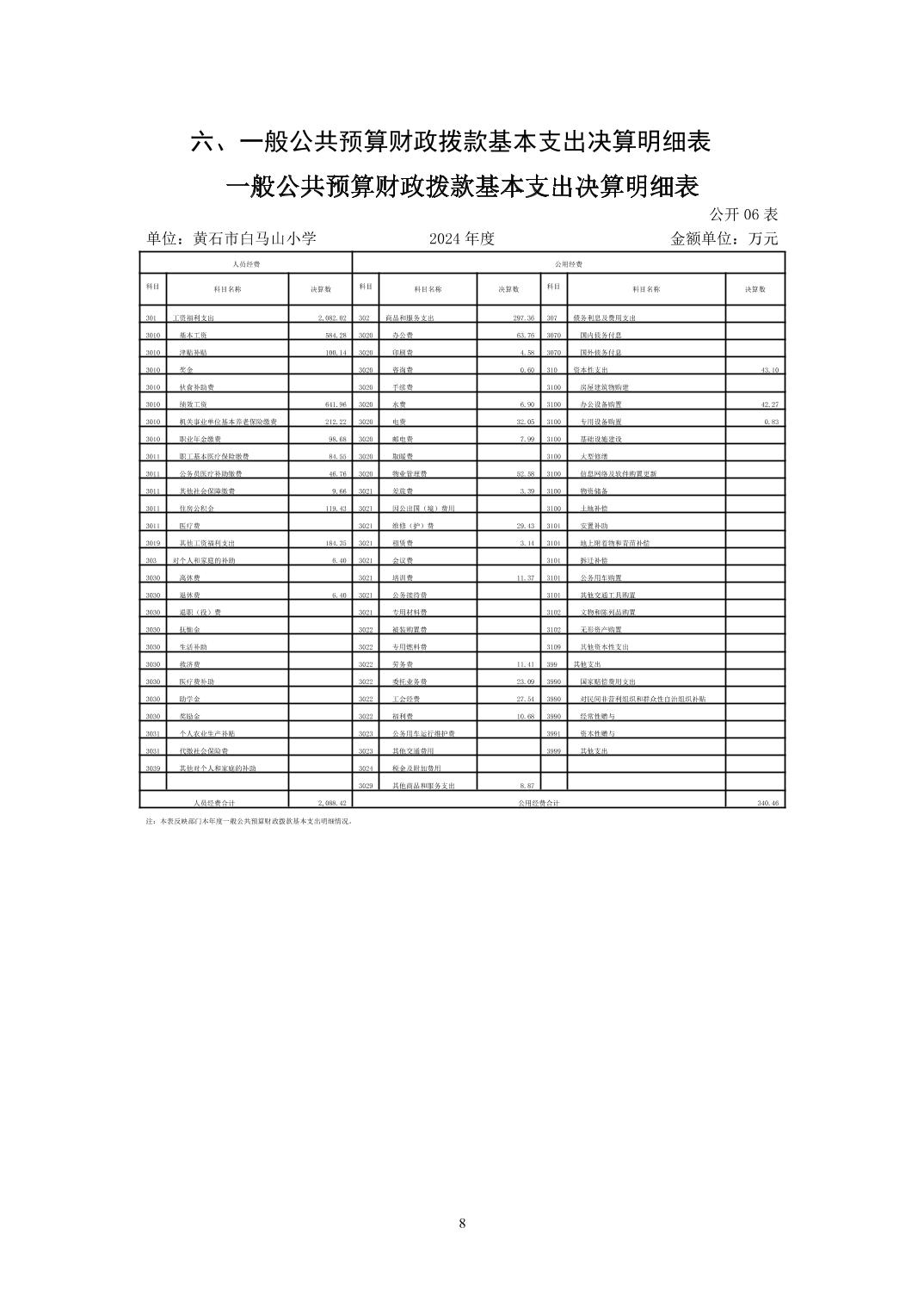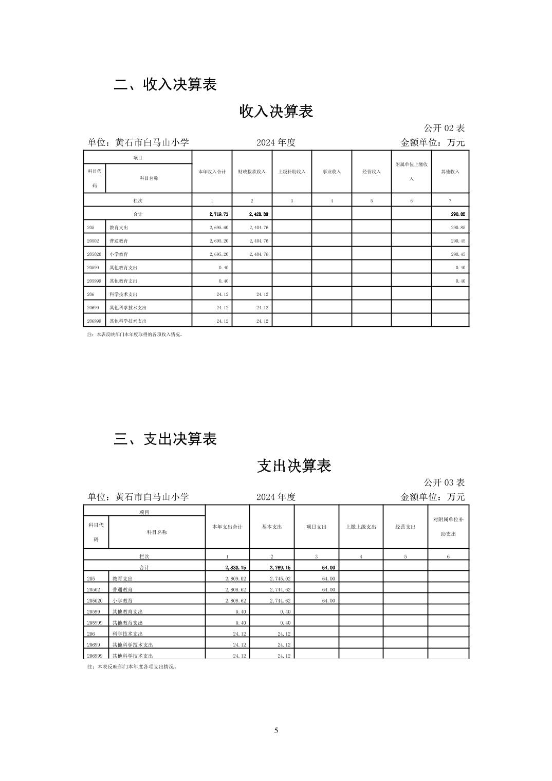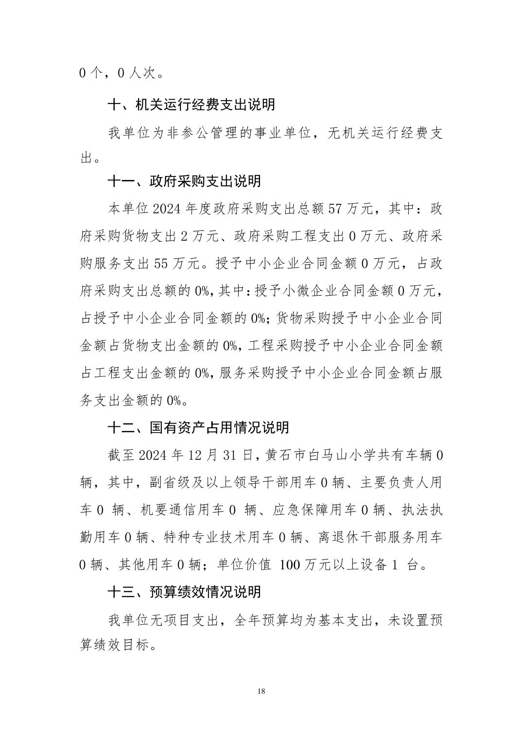 白马山小学2024年度部门决算