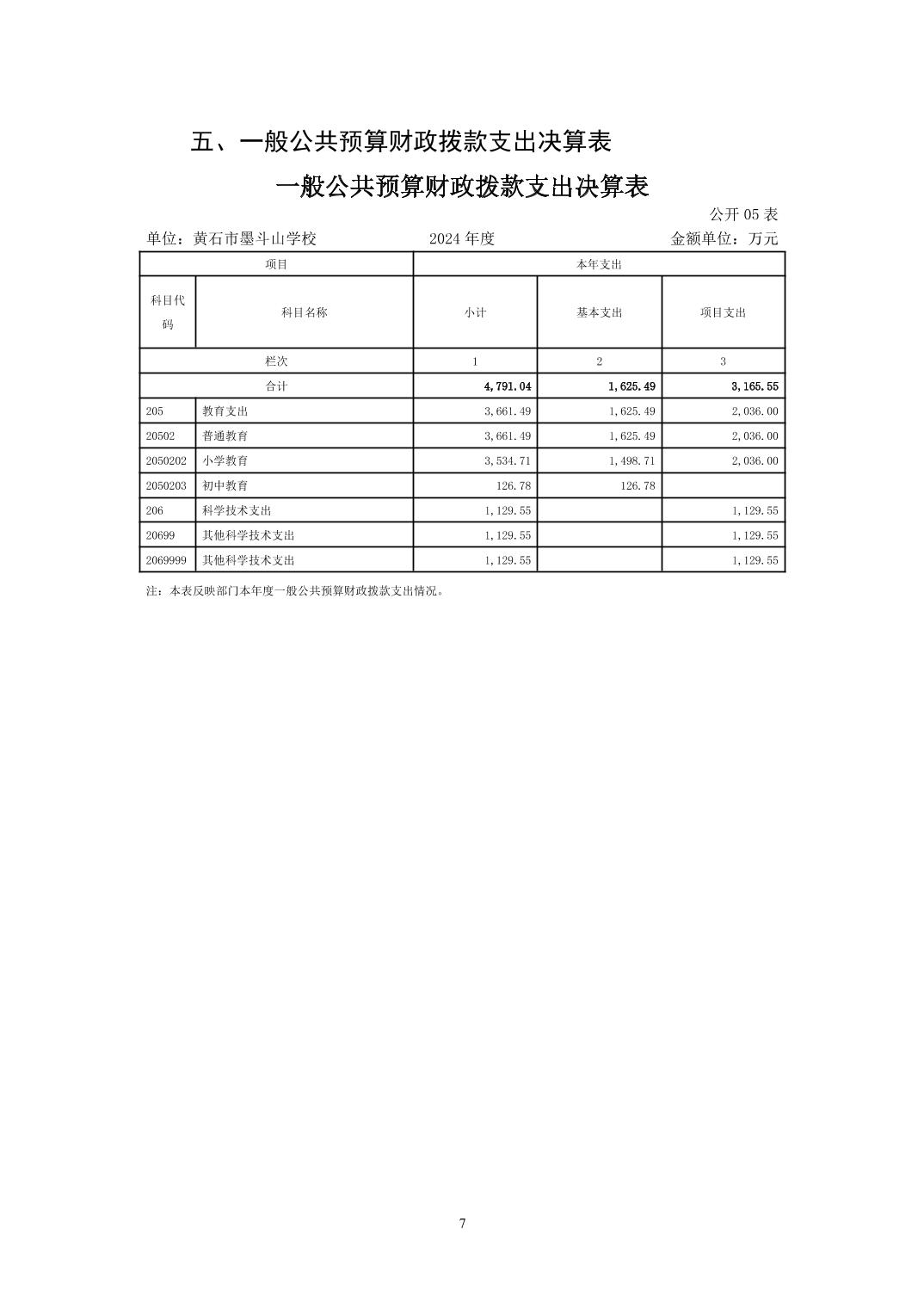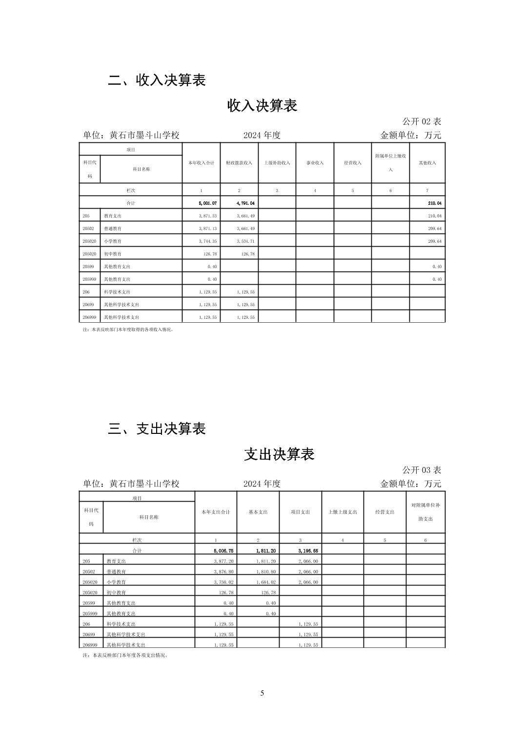 墨斗山小学2024年度部门决算