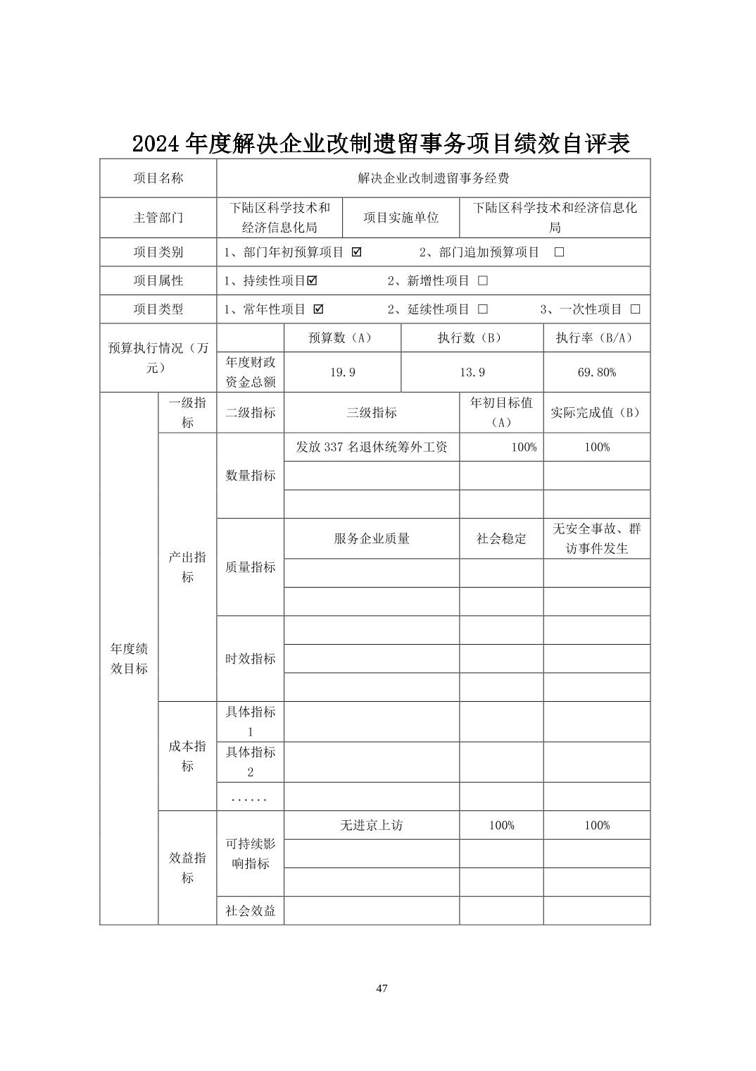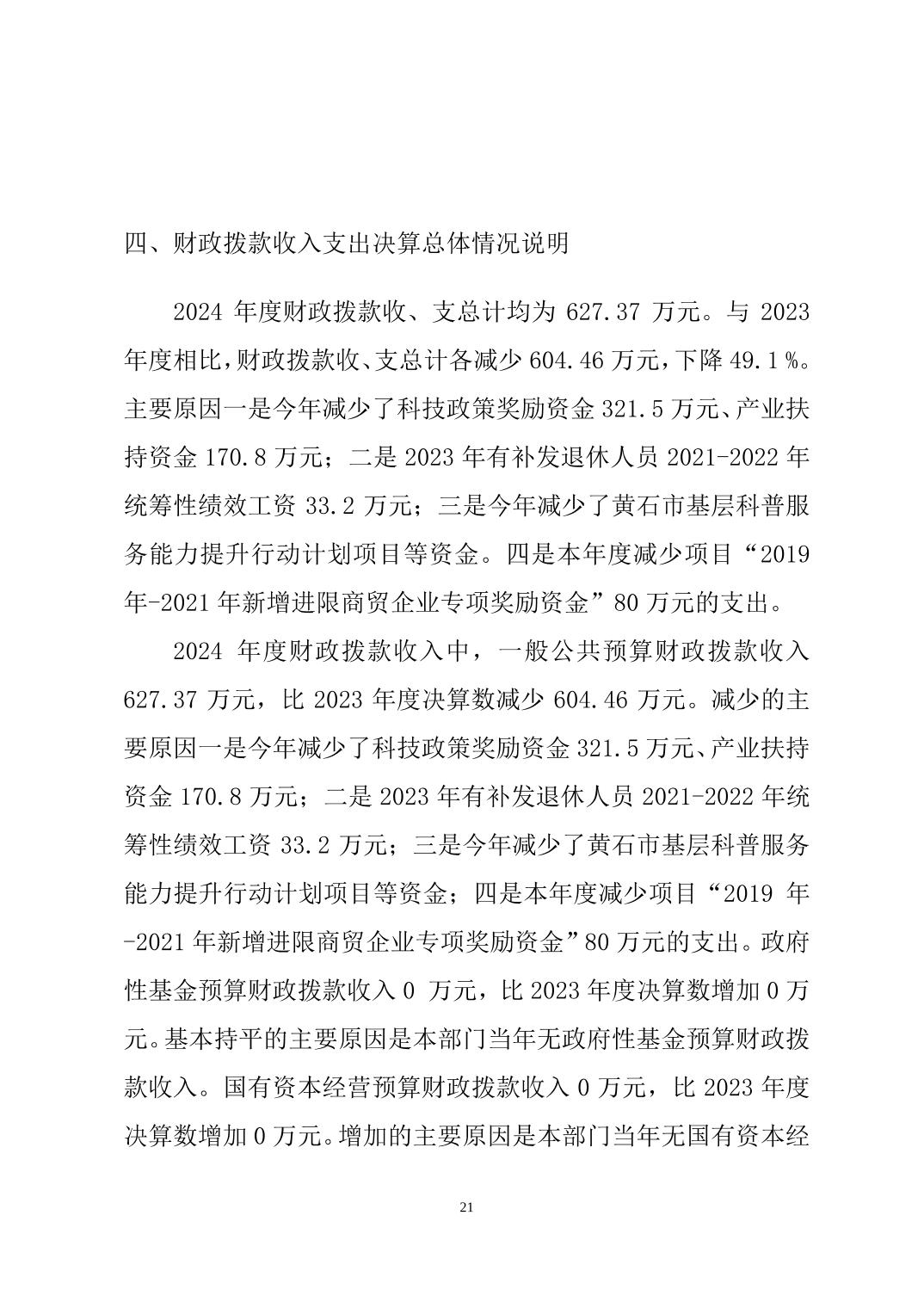 名 称: 下陆区科学技术和经济信息化局(汇总)2024年度部门决算