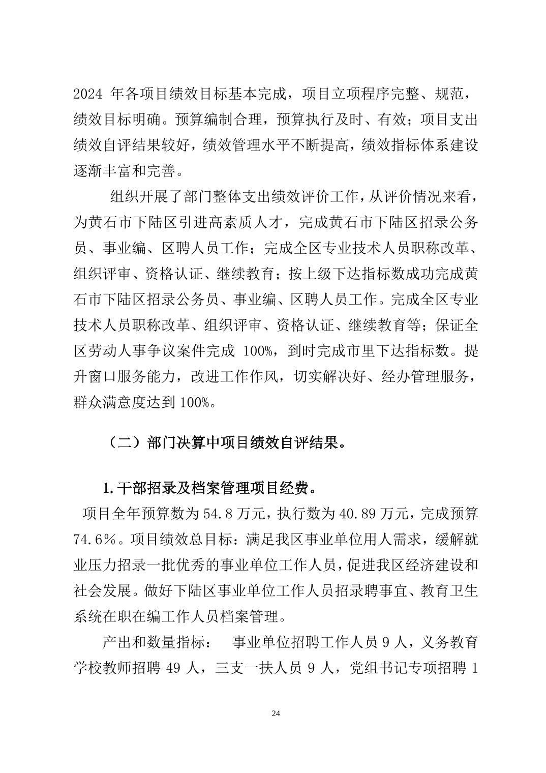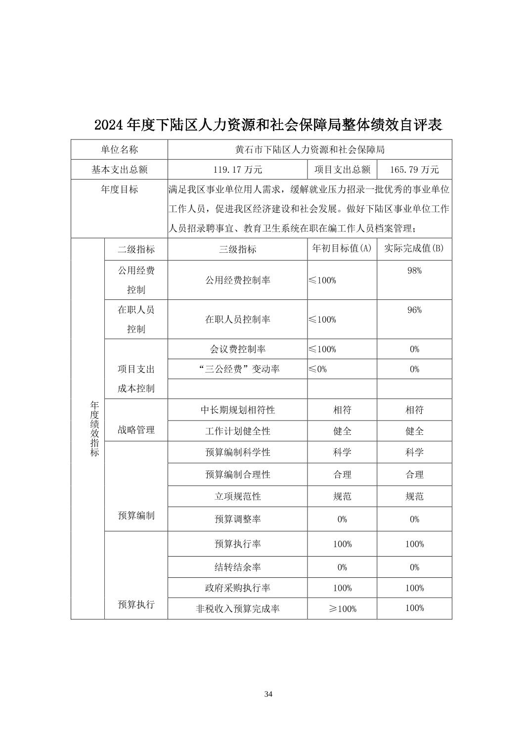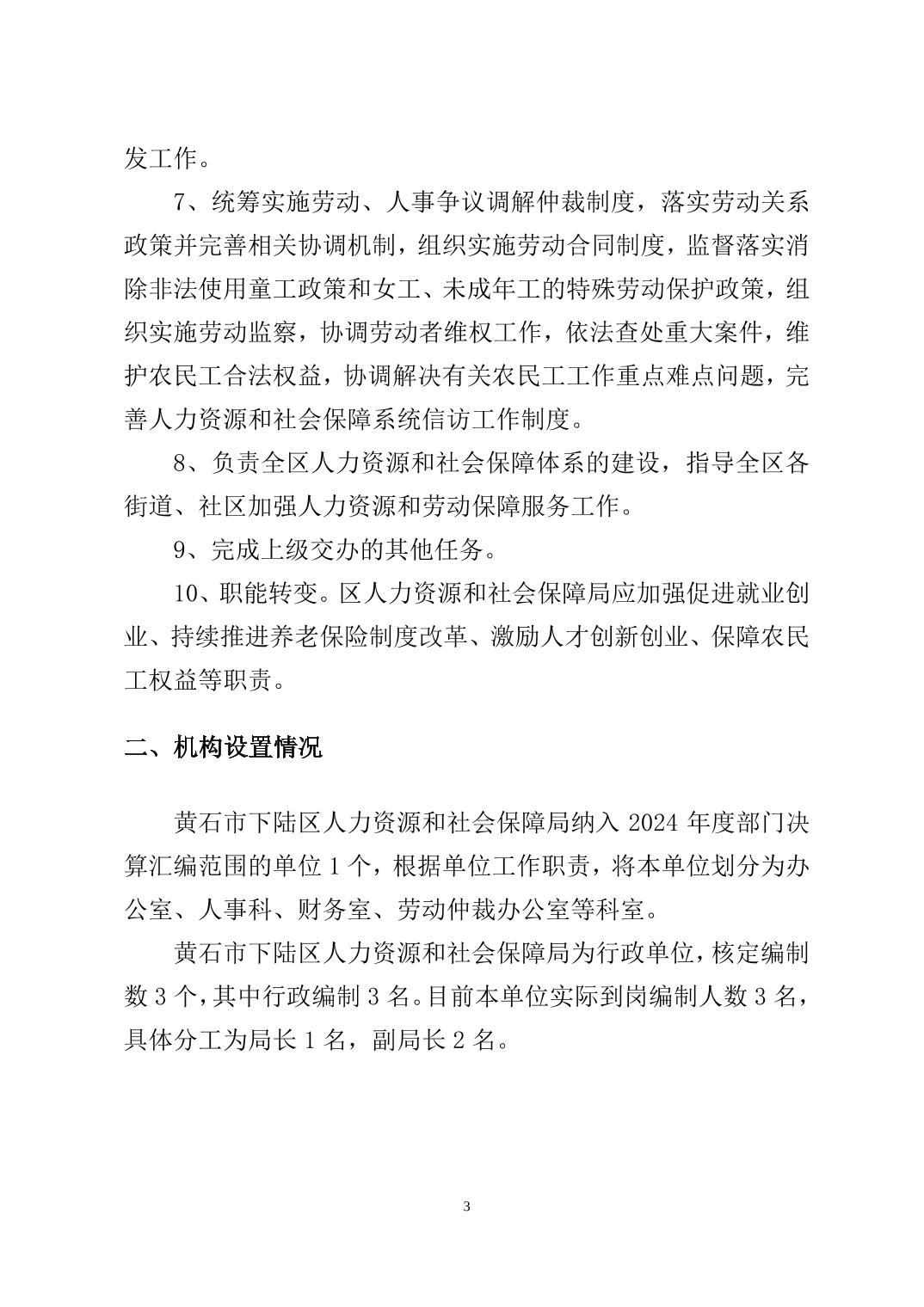 名 称: 下陆区人力资源和社会保障局(本级)2024年度部门决算