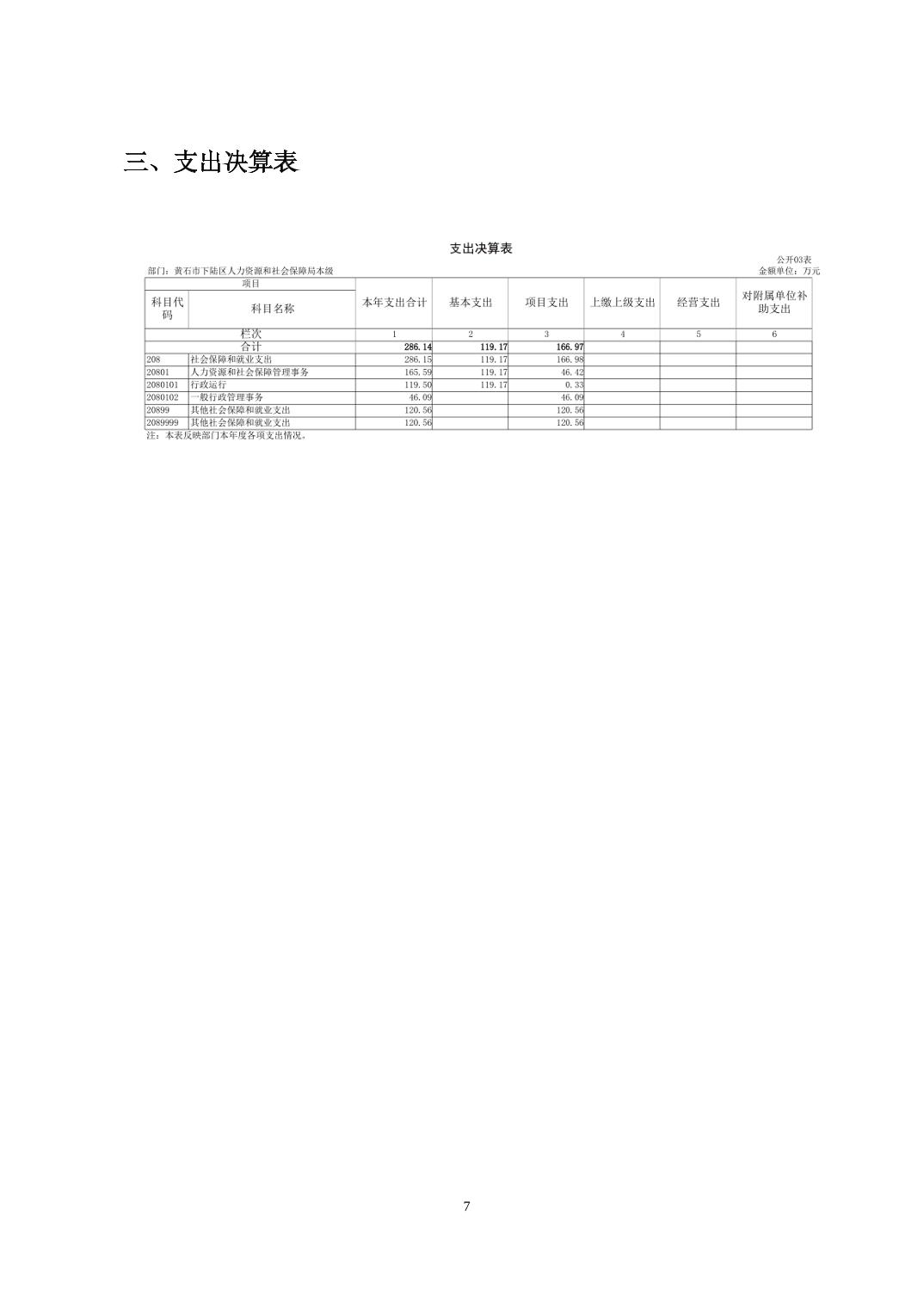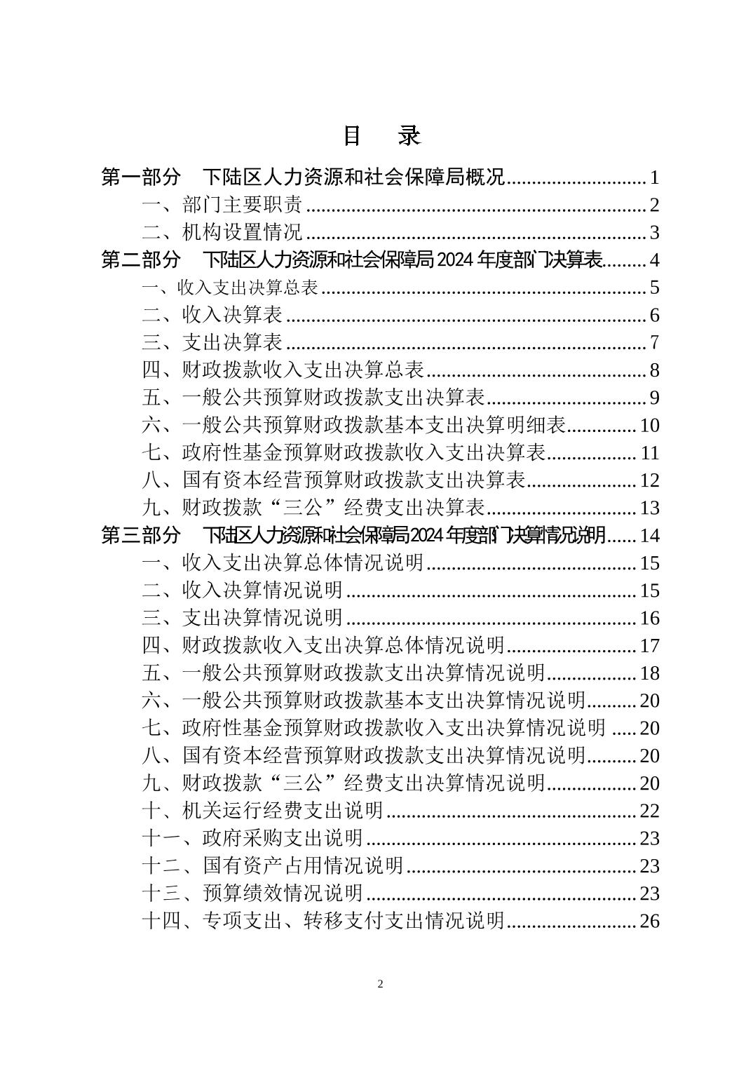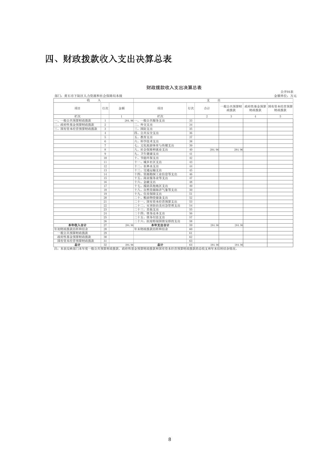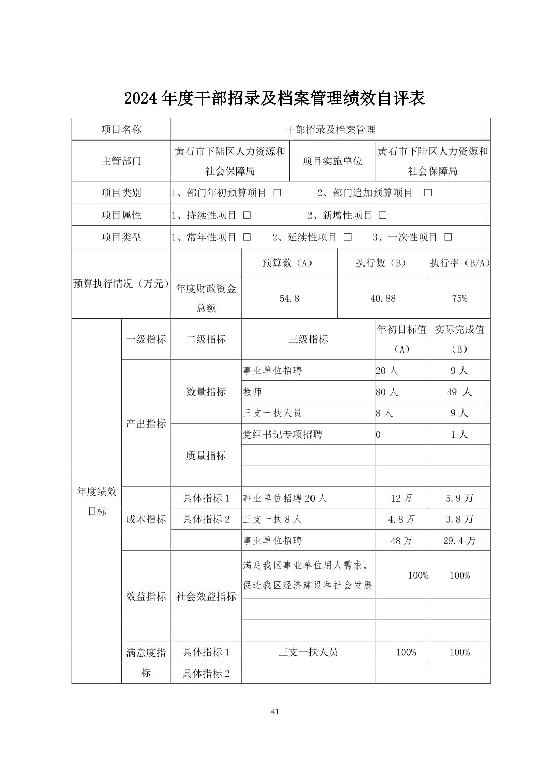 名 称: 下陆区人力资源和社会保障局(本级)2024年度部门决算