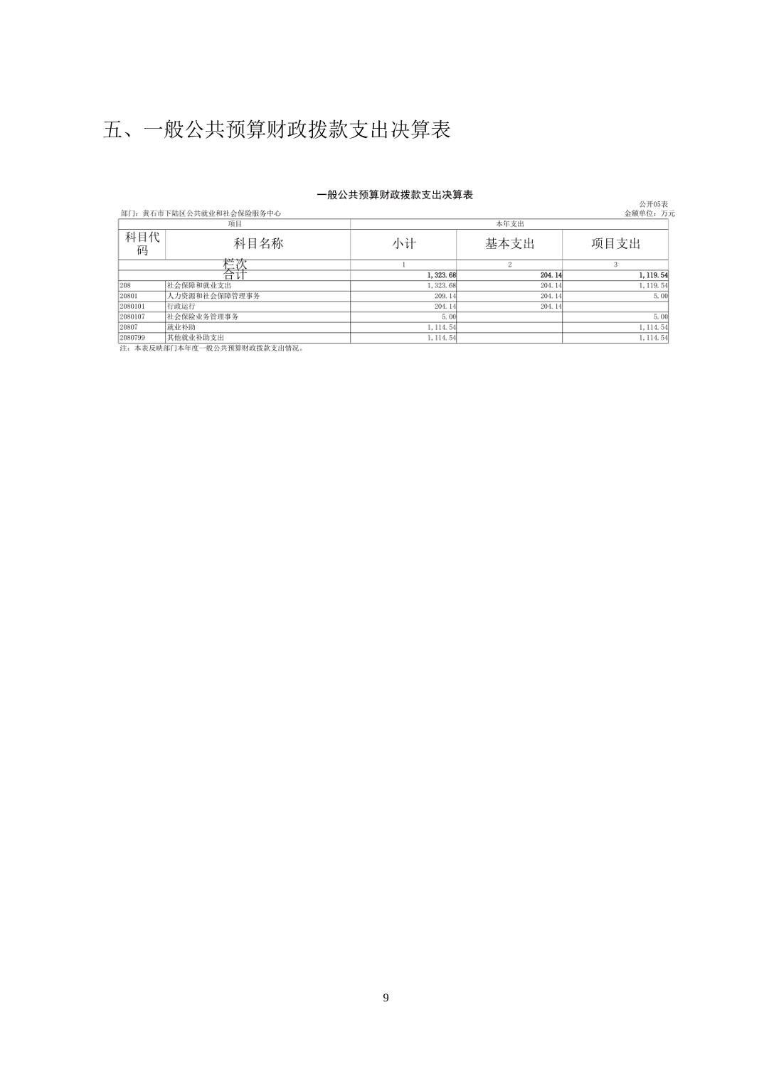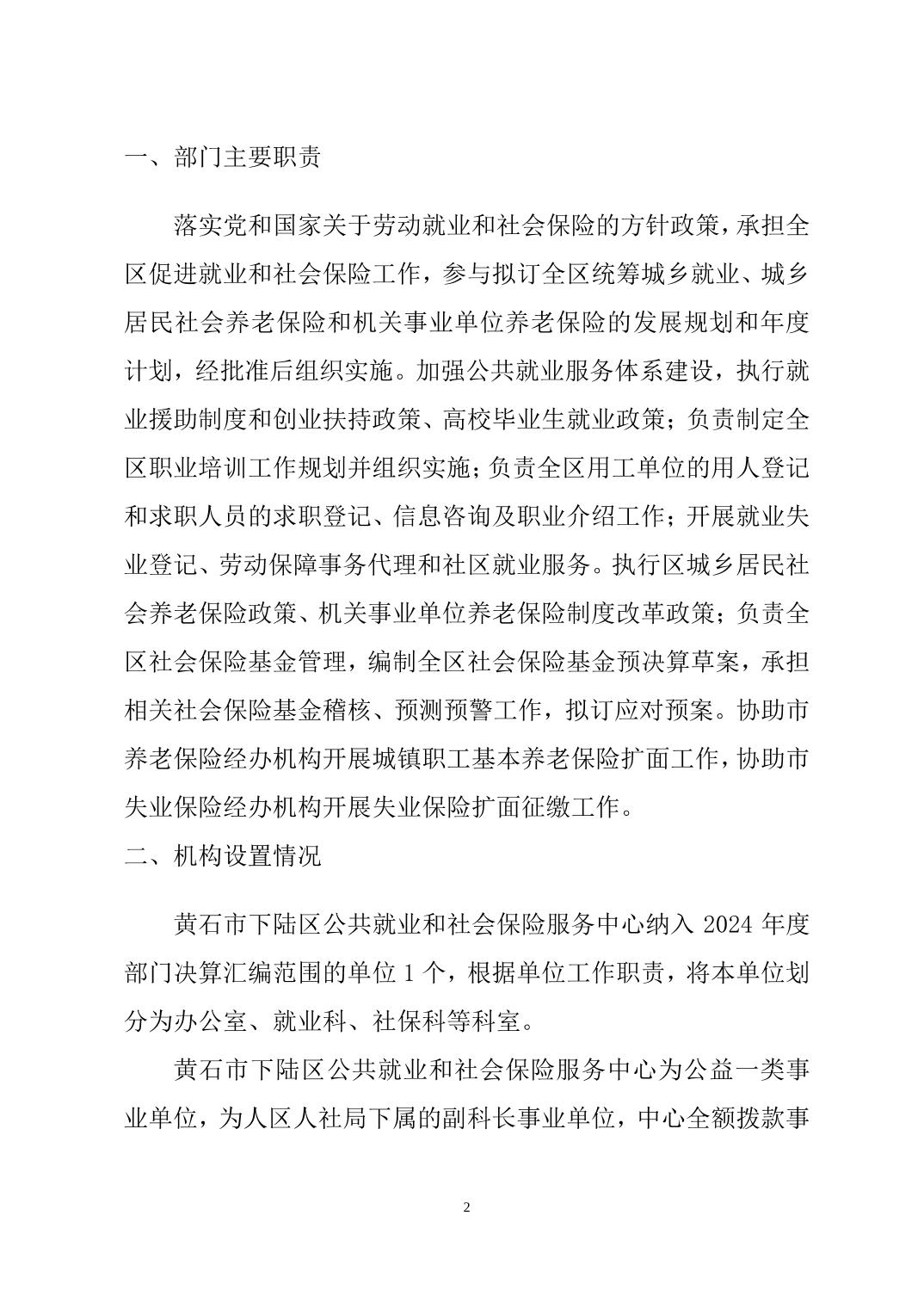 名 称: 下陆区公共就业和社会保险服务中心2024年度部门决算