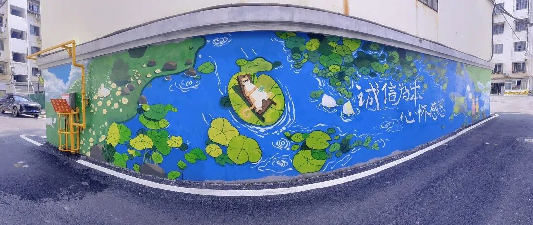 武夷花园是团城山区域较老的小区,2022年初被列为旧城改造工程。经过周密规划和设计,旧改工作有序推进,目前改造工程已进入收尾阶段。为了让老旧小区改造后更具特色,社区工作人员走访收集社情民意,采用在墙体绘制彩绘,提升小区颜值。