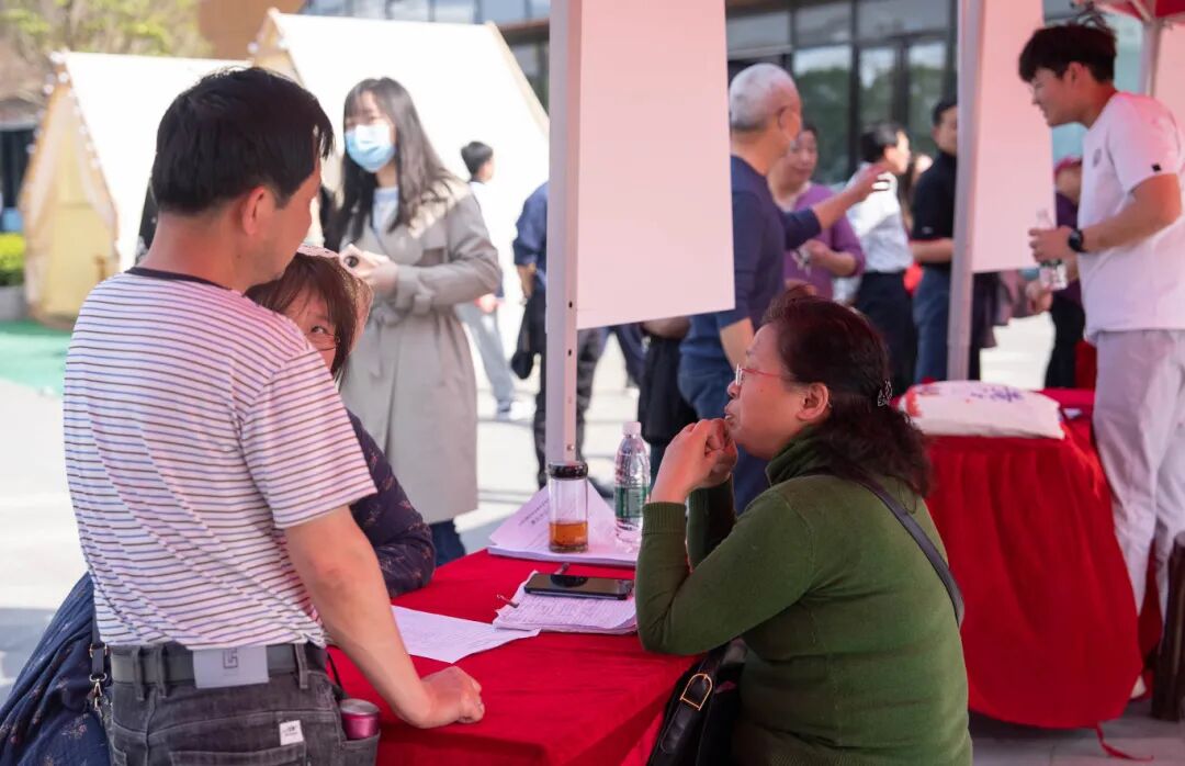 人本轴承、哈特贝尔、宝通智能、世星药业等27家企业在现场“摆摊纳才”,岗位涉及电子电器、工业制造、酒店餐饮、医疗健康、美容等多类别。活动还设有线上直播间,当天抖音在线互动上万余人,线上线下共收到简历300余份。