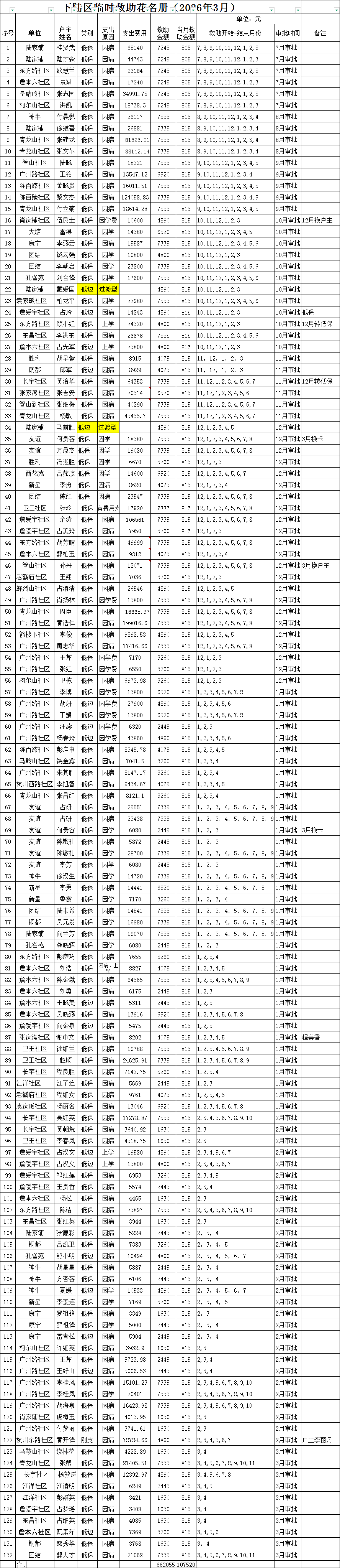 下陆区临时救助花名册(2026年3月)