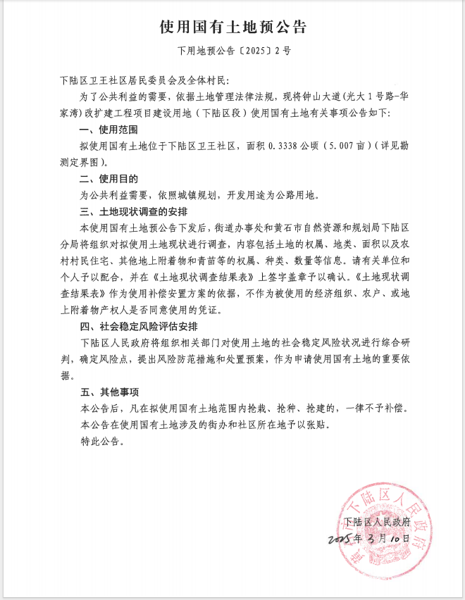 索 引 号: 000014349/2025-25840 发布日期: 2025-03-10 发布机构: 下陆区人民政府 下陆区自然资...