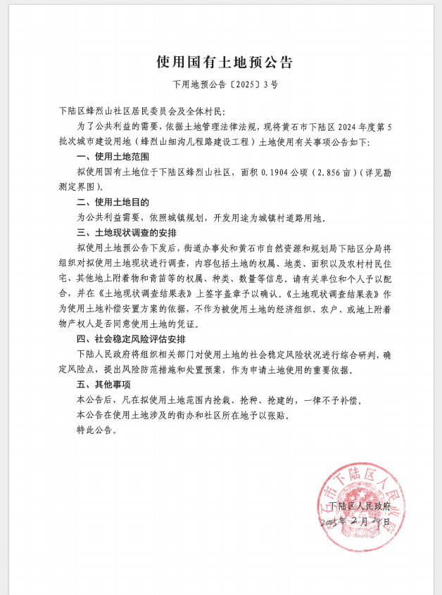 索 引 号: 000014349/2025-31259 发布日期: 2025-02-24 发布机构: 下陆区人民政府 下陆区自然资...