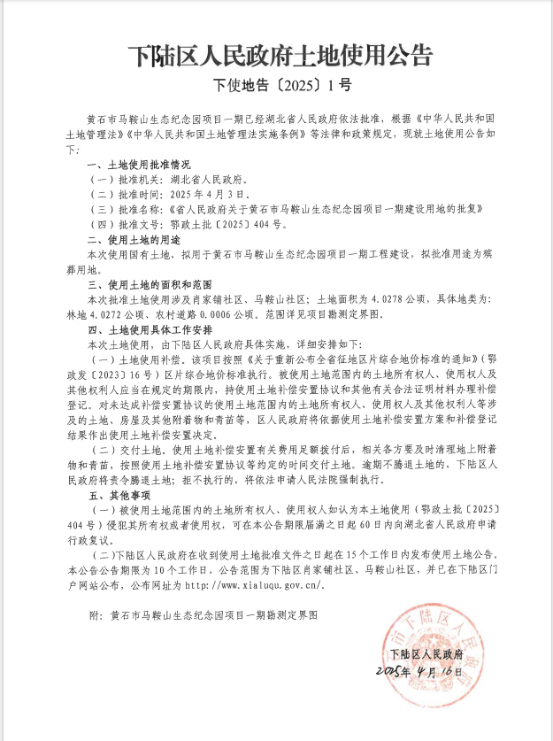 名 称: 下陆区人民政府土地使用公告