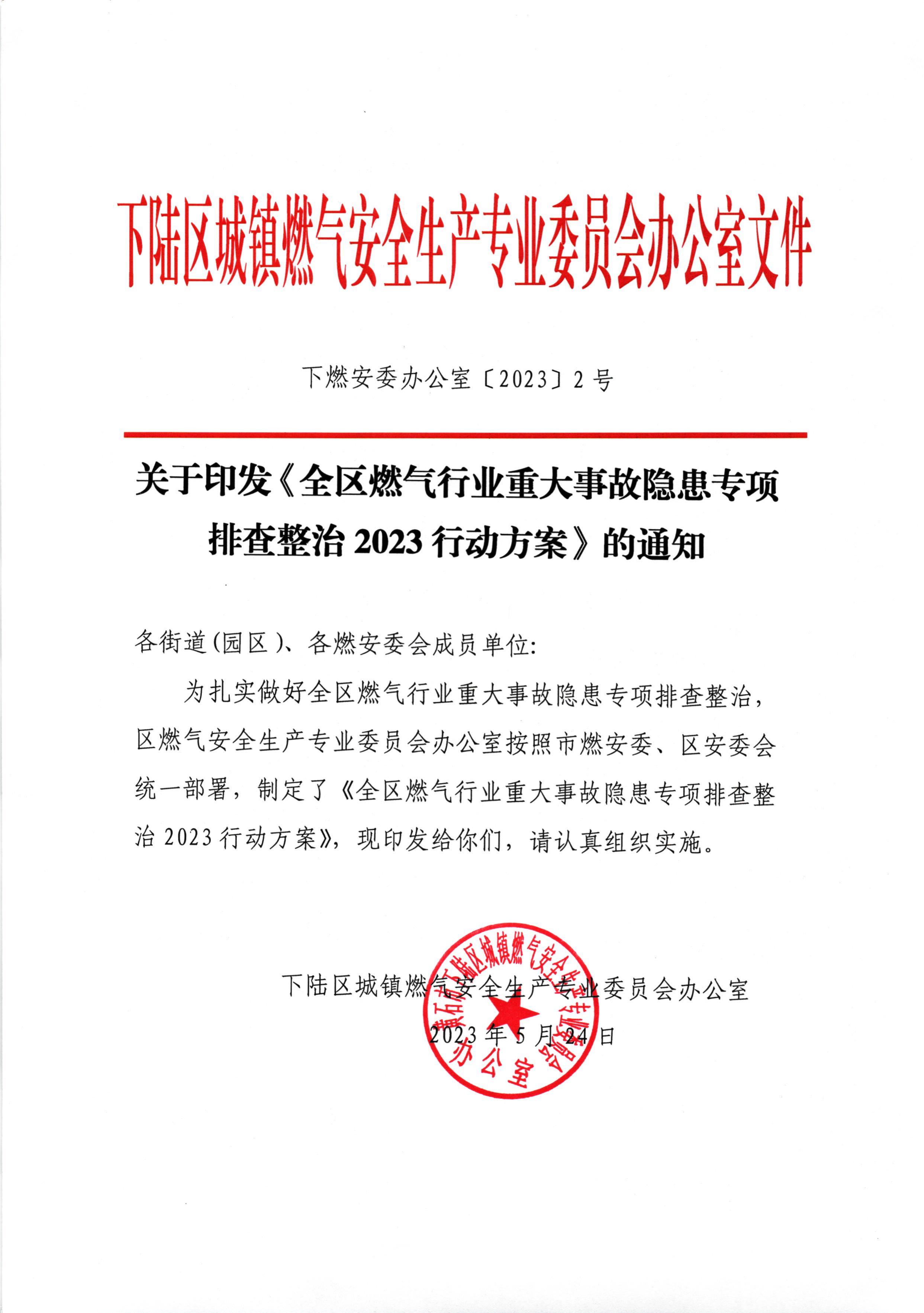 名 称: 关于印发《全区燃气行业重大事故隐患专项排查整治2023行动方案》的通知