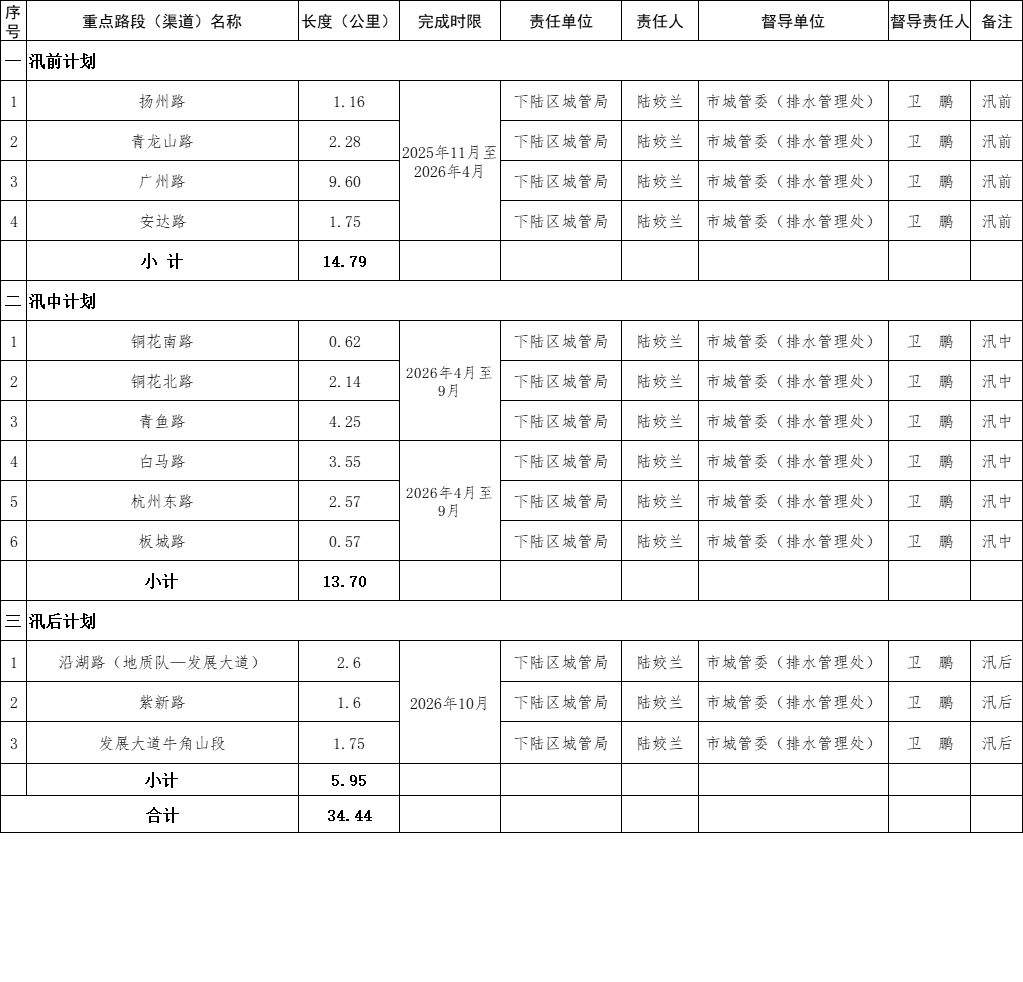名 称: 2026年下陆区雨水排水管道疏通工作计划