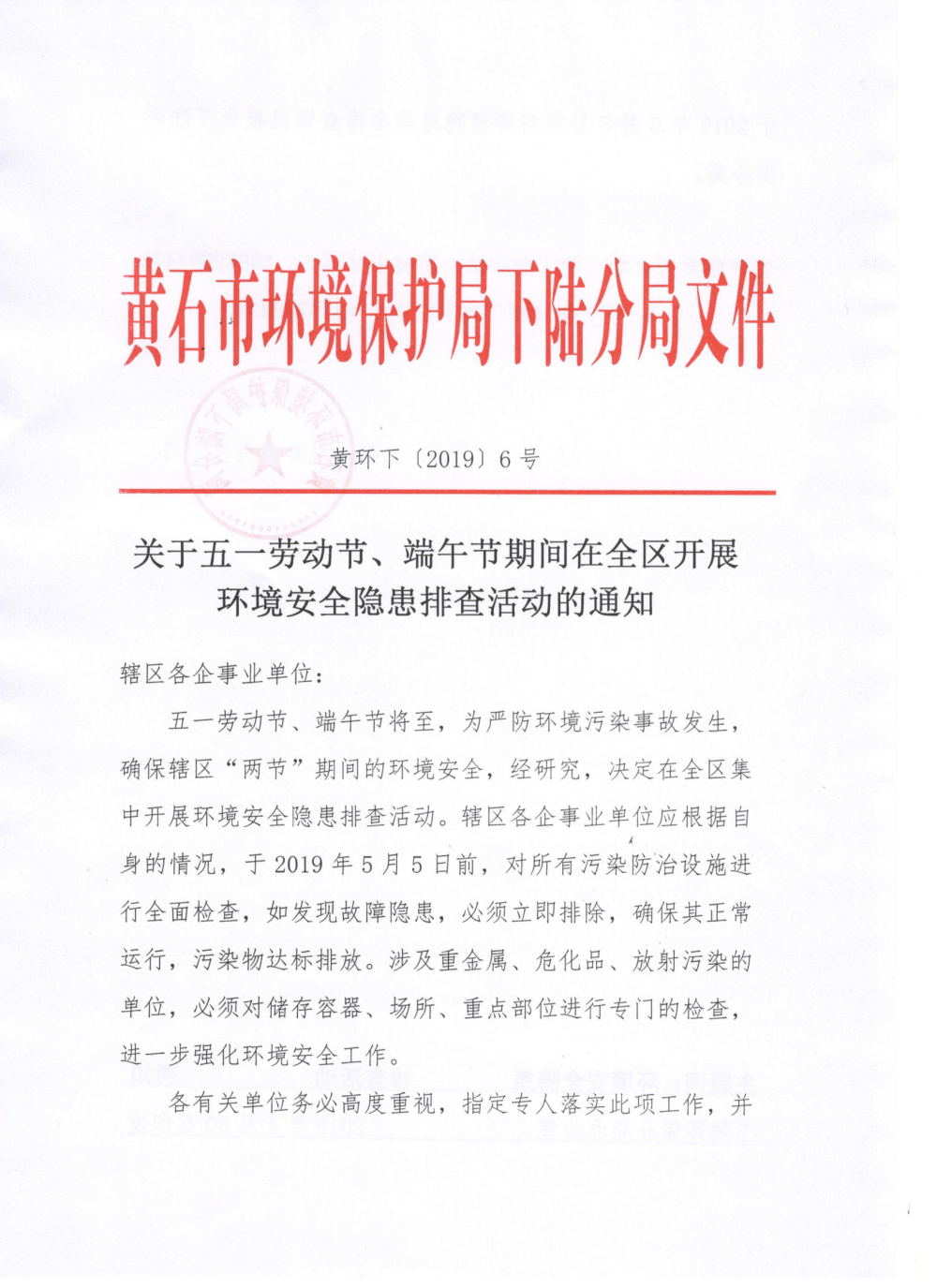 名 称: 关于五一劳动节、端午节期间在全区开展环境安全隐患排查活动的通知
