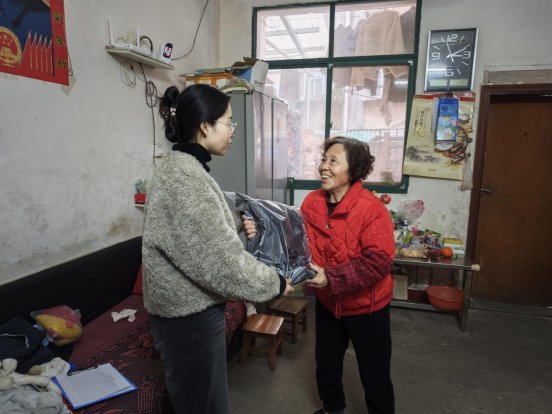 “鲁奶奶,天冷了,我们给您送护理垫和棉衣来啦!”