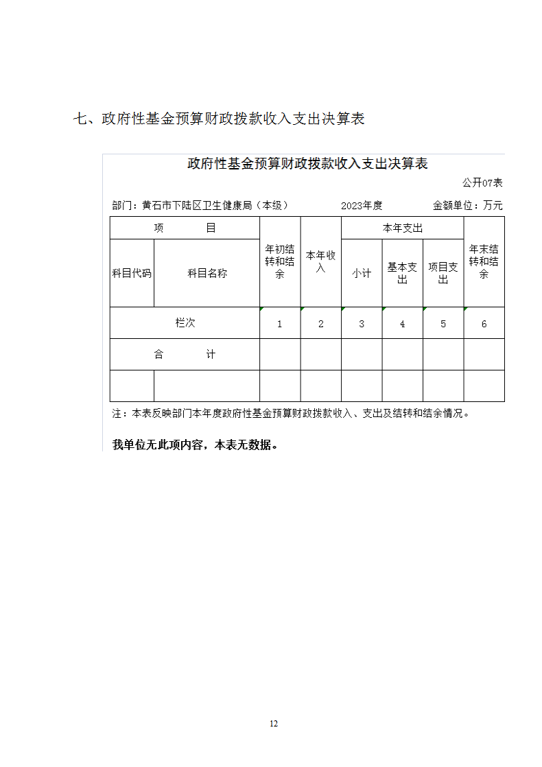 名 称: 黄石市下陆区卫生健康局2023年度部门决算公开(本级)