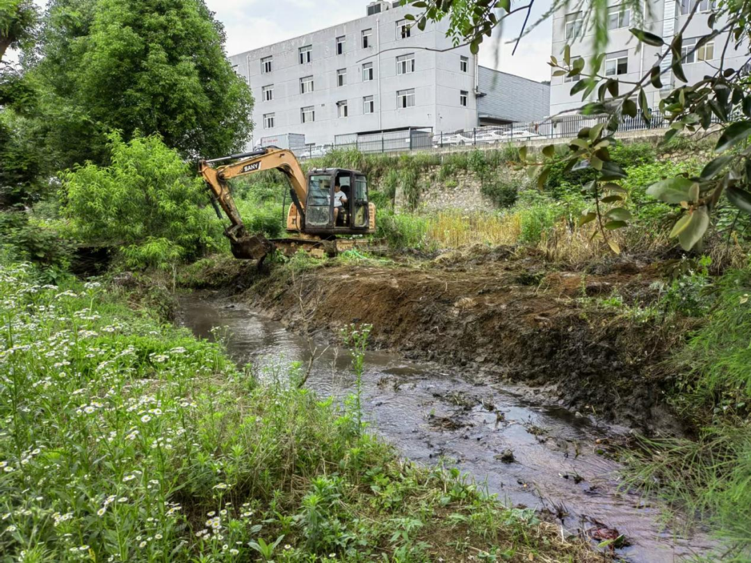 春季万物复苏,排洪港沟底杂草生长迅速,加上枯枝落叶在沟底沉积,使得水流不畅,江洋水库备汛压力增大。针对该情况,江洋社区于近期组织10多名工人和1台机械,对辖区内蔡家垄排洪港沿线杂草、杂物进行清理。