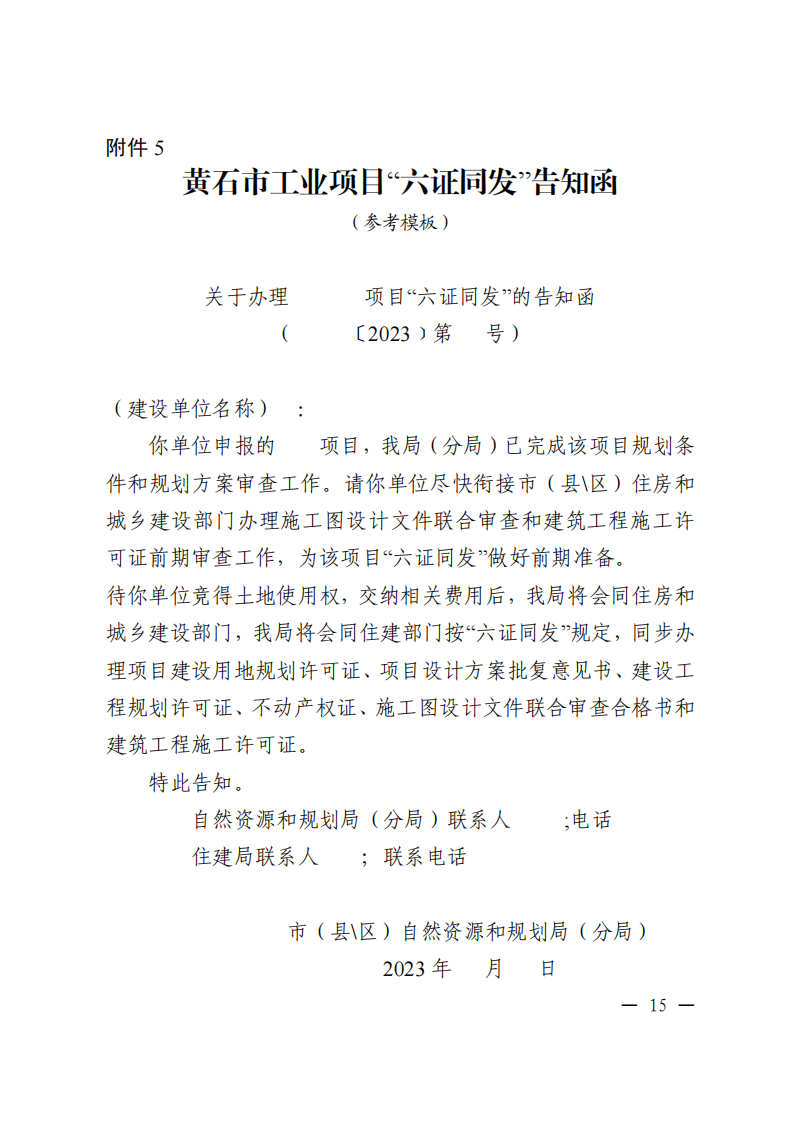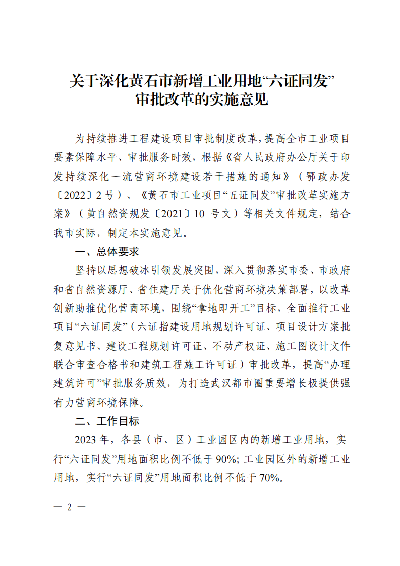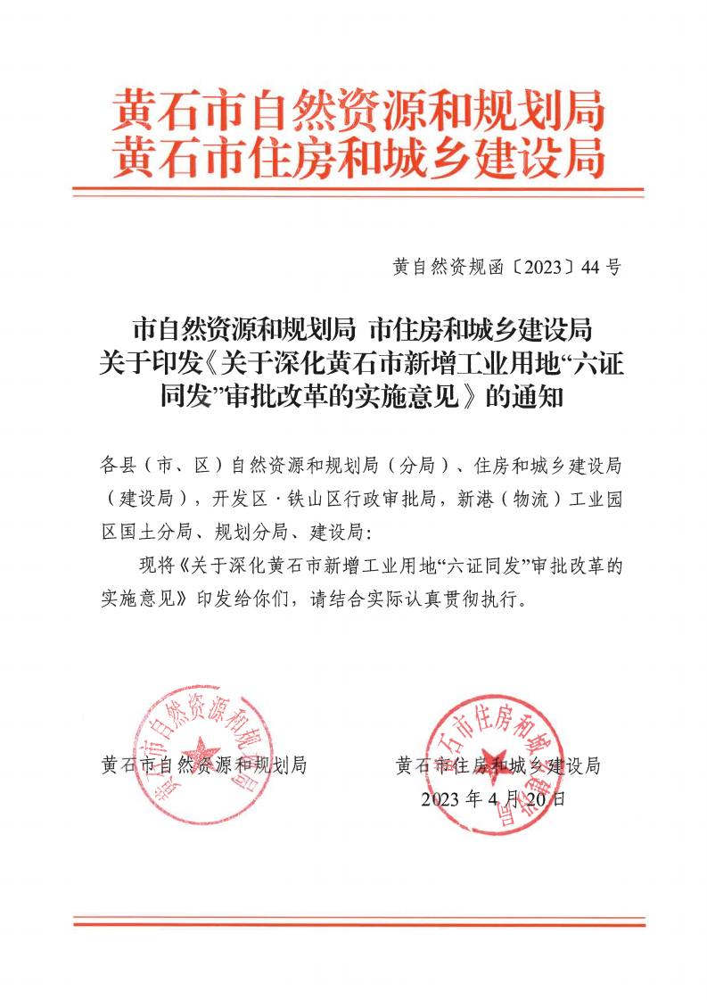 市自然资源和规划局 市住房和城乡建设局关于印发《关于深化黄石市新增工业用地“六证同发”审批改革的实施意见》的通知